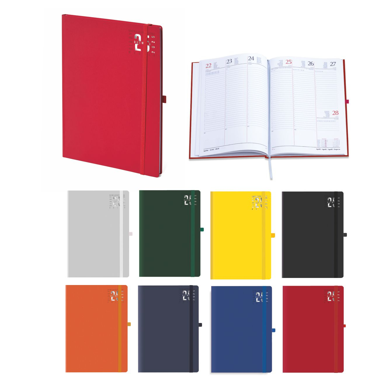 Agenda “Dynamic” settimanale con elastico. Materiale: Matra. Interno stampa 2 colori. Carta bianca. Multilingue. Cartina geografica, rubrica telefonica. Colori: blu, rosso, nero, verde, royal, arancio. Dimensioni cm. 17x24 Imballo: 20xcolore