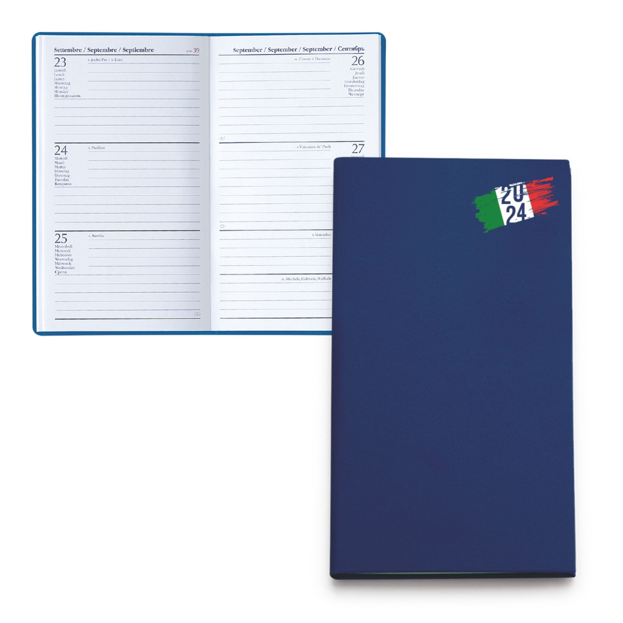 Agendina settimanale in matra. Interno stampa 2 colori. Multilingue, rubrica telefonica, cartina geografica. Colore unico. Dimensioni cm 8x14 Imballo: 100