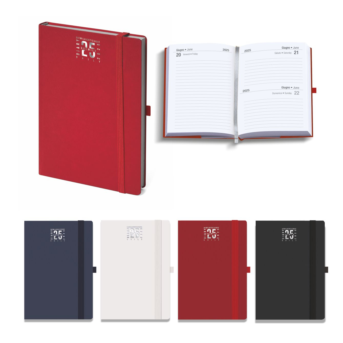 Agendina giornaliera con elastico. Materiale pvc. Interno stampa 1 colore. Carta bianca 80gr. Multi-lingue. Note personali, festività nel mondo, pesi e misure. Segna pagine. Colori: blu, nero, rosso. Dimensioni cm. 9x13 Imballo: 40xcolore