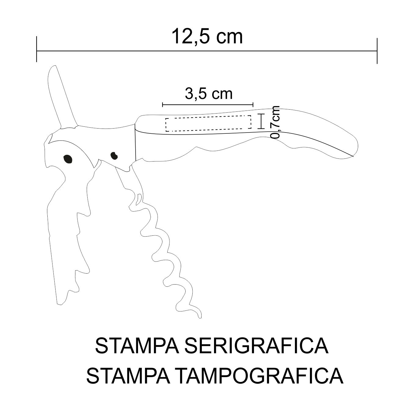 Apribottiglie dal design classico in acciaio inox con cavatappi e taglierino. Presentato in scatola bianca. Dimensioni cm. 12,5x2 Imballo: 200xcolore