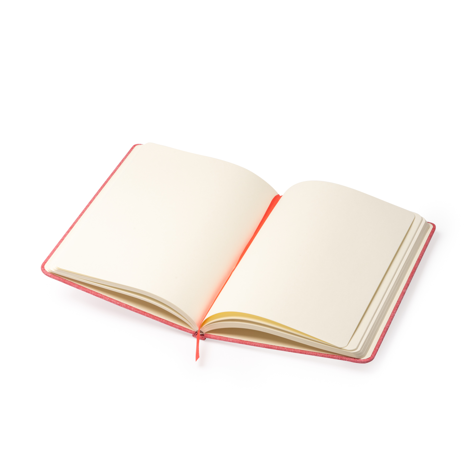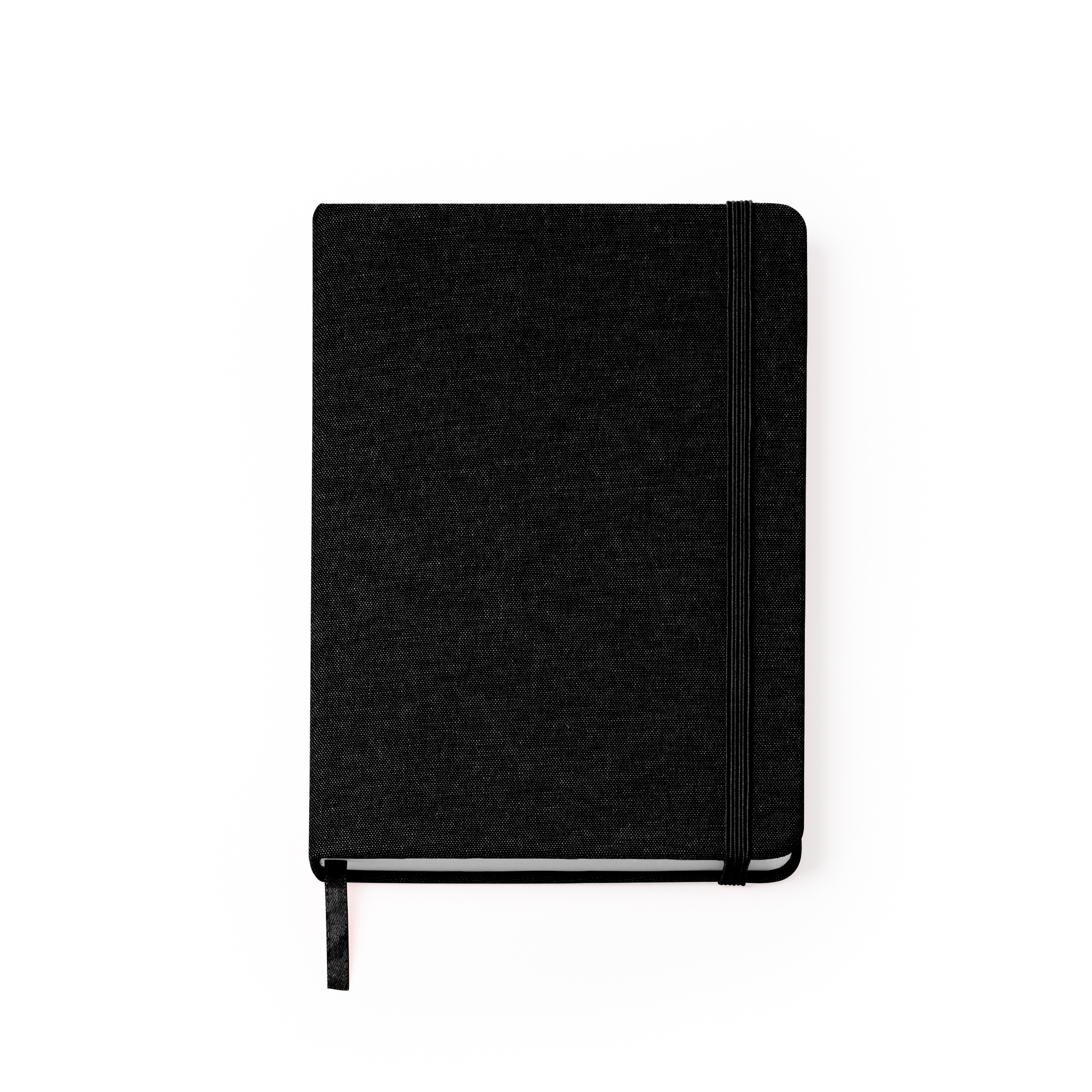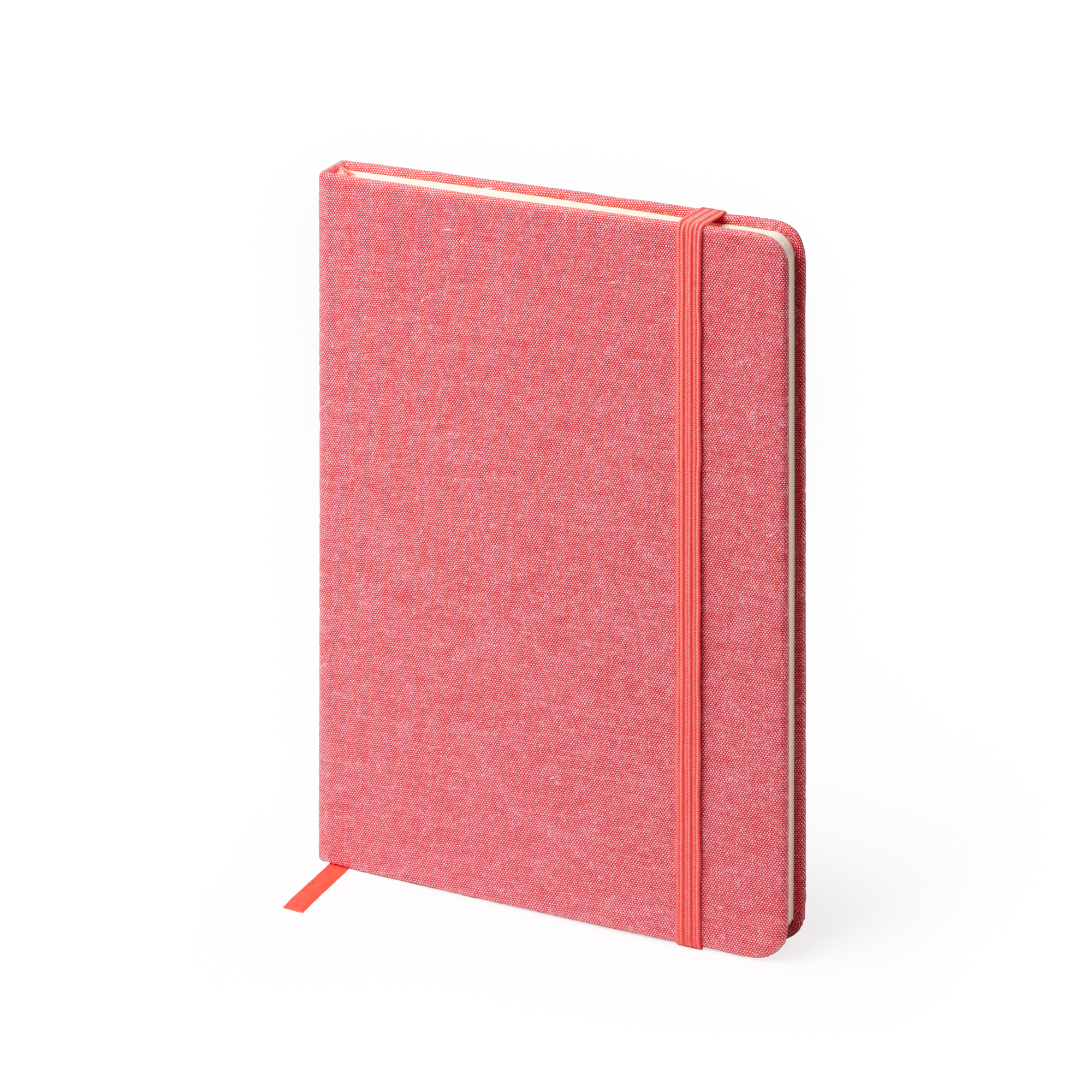 Quaderno A5 con copertina in cotone. Segnapagina ed elastico. 100 fogli bianchi. Dimensioni: cm 14x21x1,5