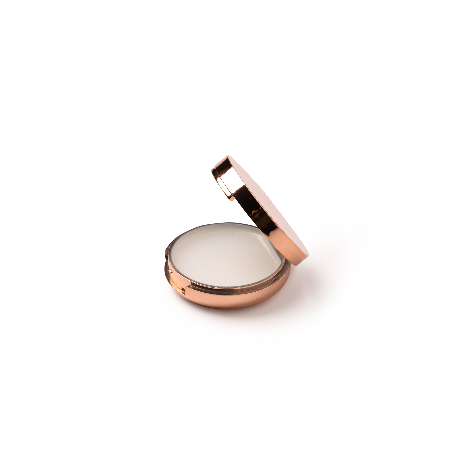 Balsamo per labbra in astuccio cromato con specchietto interno. Protezione SPF15. Dimensioni: cm 1,6x4,8Ø
