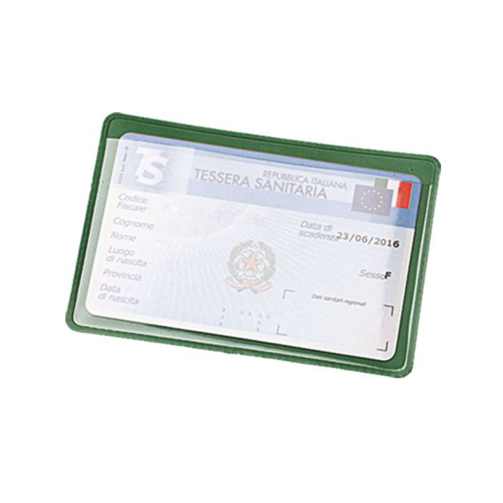 Porta tessera in pvc. Colori: verde, bianco. Dimensioni cm. 9,5x6