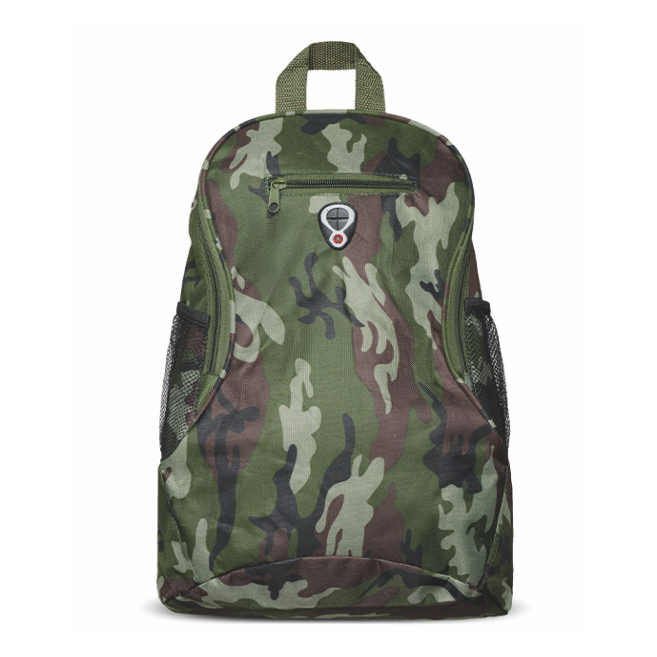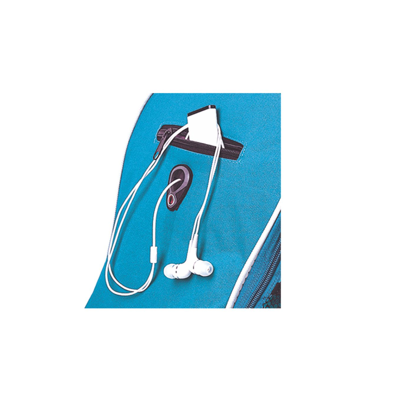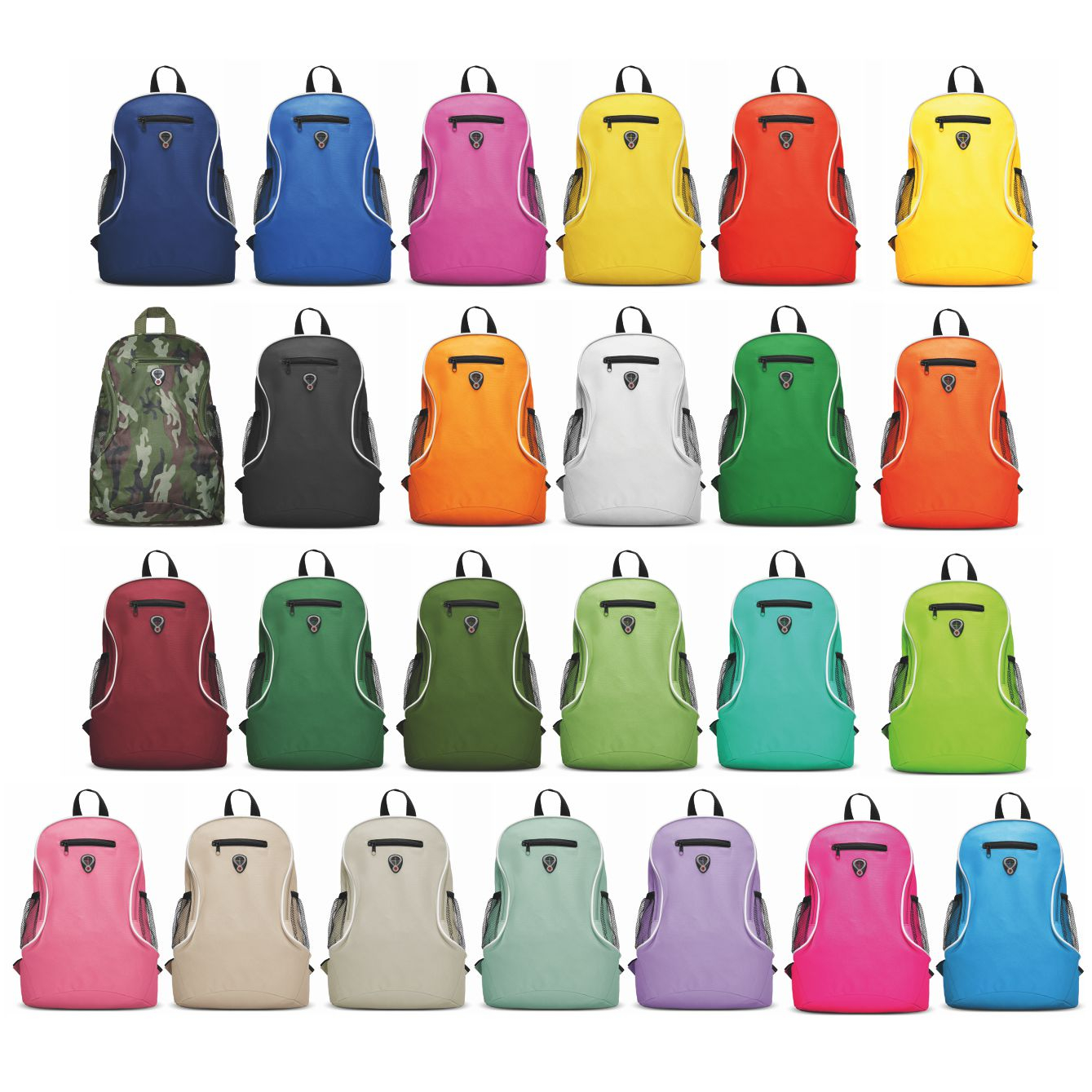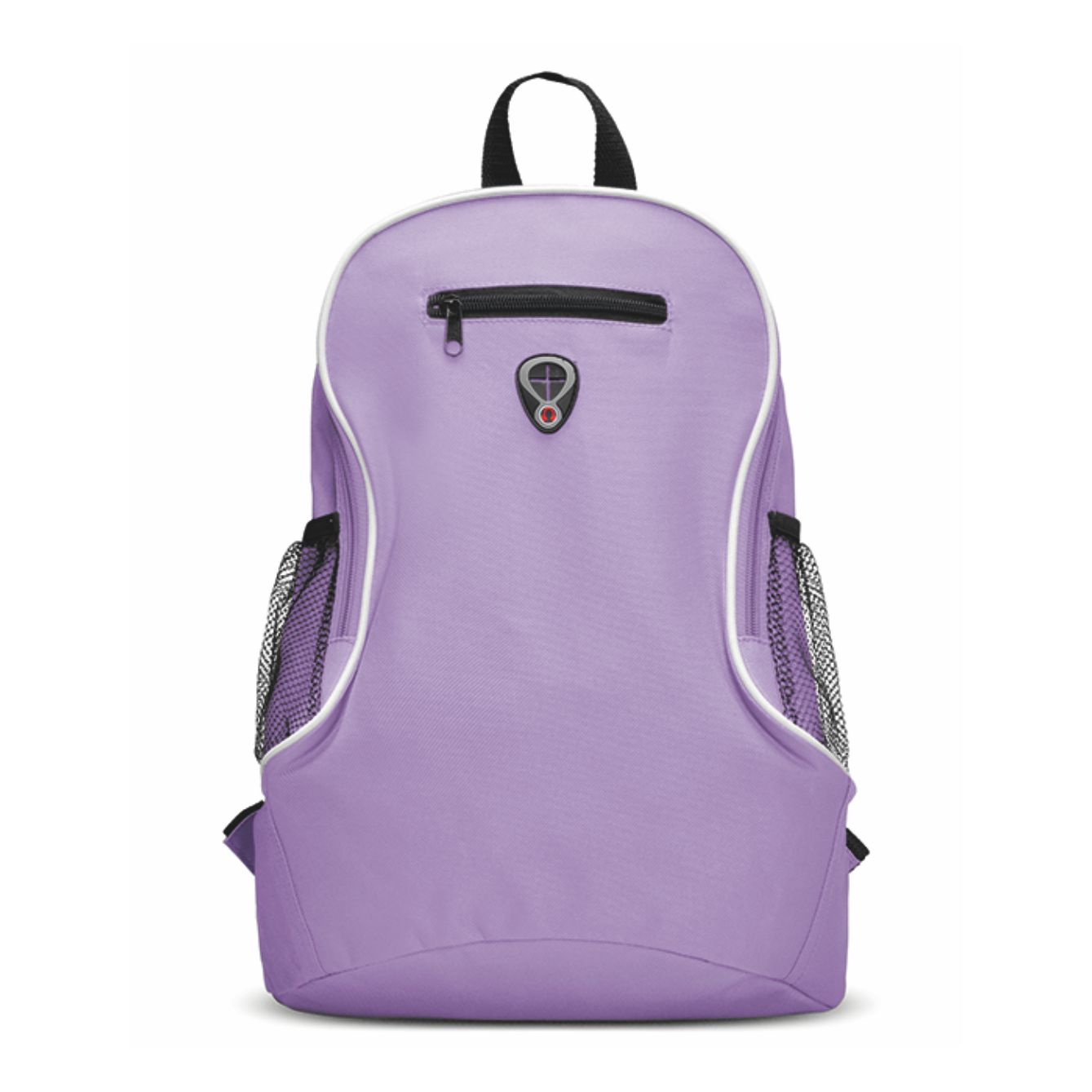 Zaino in poliestere 600D. Chiusura con zip. Tasca frontale con uscita auricolari chiusa da zip. Corredato di manico rinforzato. Tracolle salva spalle regolabili. Taschini laterali a rete. Confezione in polybag. Dimensioni cm. 29x40x17. Imballo: 40xcolore