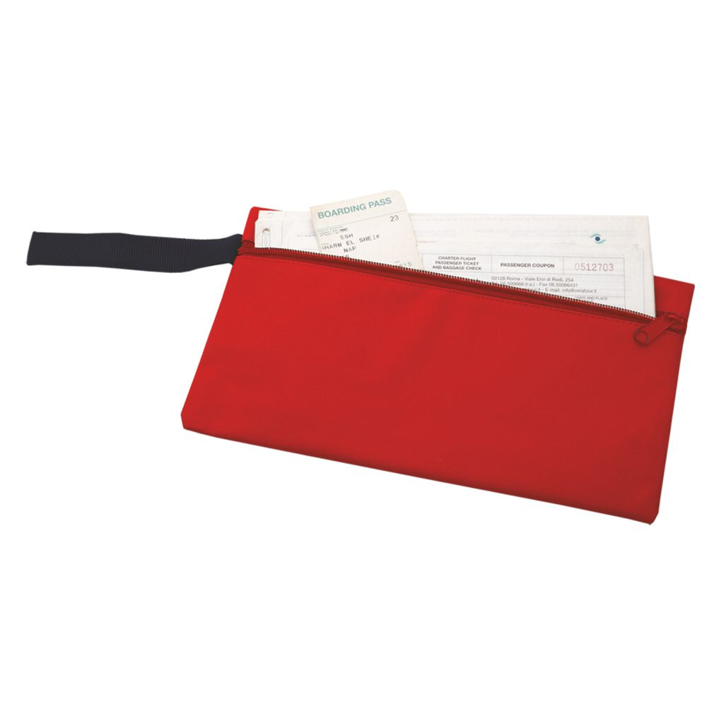 Porta documenti in poliestere 600D. Colori: arancio, rosso, royal, bianco, blu, nero. Confezione in polybag. Dimensioni cm.26x15 Imballo: 500xcolore