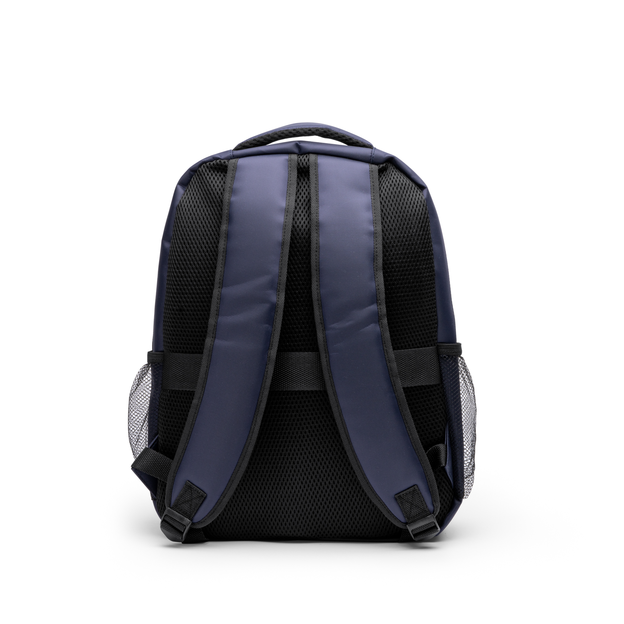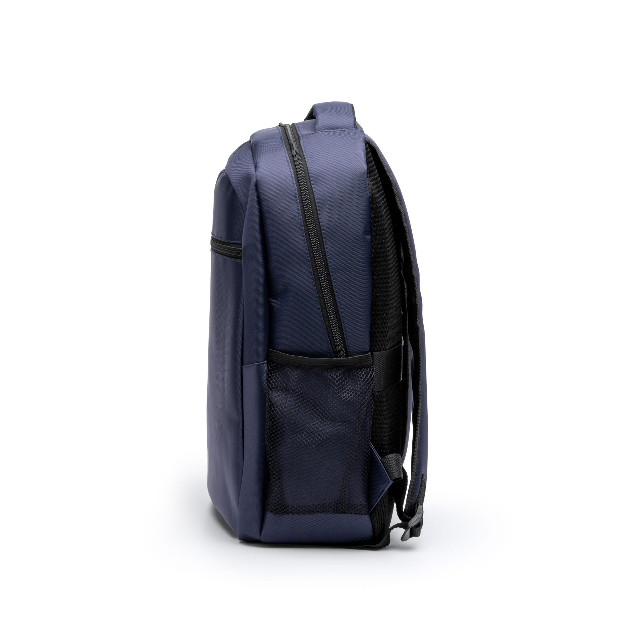 Zaino executive in nylon riciclato. Ampio scomparto principale e tasca imbottita per un computer portatile da 15. Una tasca esterna e 2 tasche laterali. Spallacci e schienale imbottiti. Cinghia per trolley. Dimensioni: cm 32x42x15