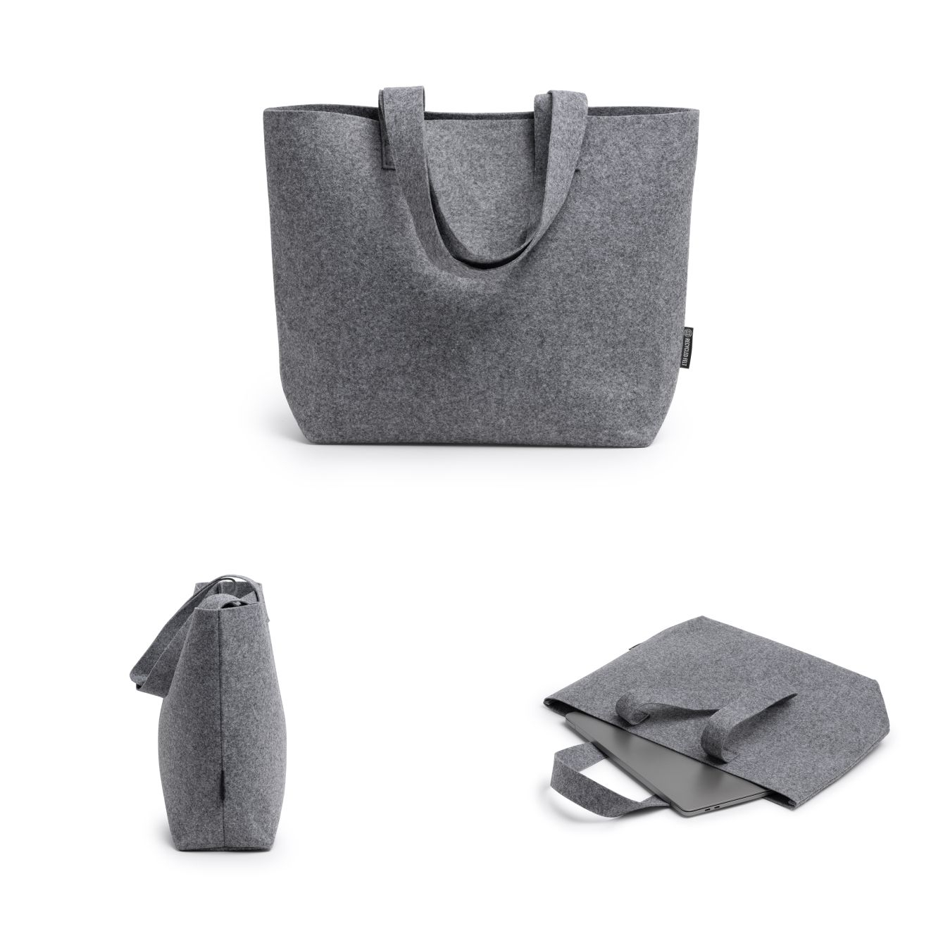 Borsa in feltro riciclato con manici rinforzati da 70 cm. Dimensioni: cm 43,5x31x13