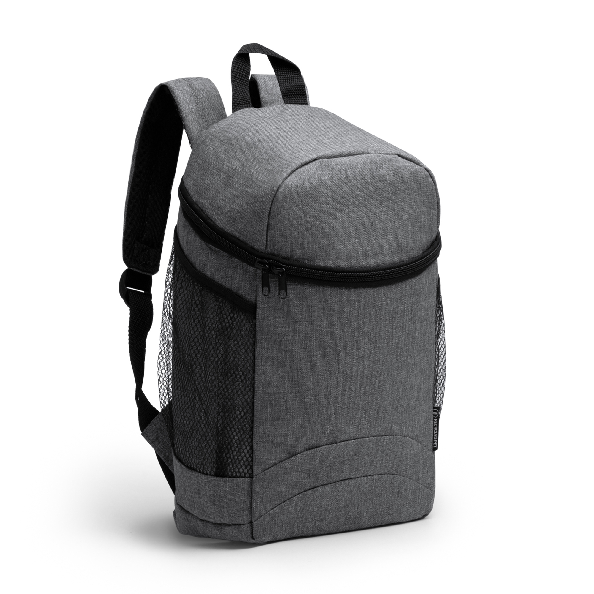 Zaino termico in poliestere RPET con design mélange. Ampio scomparto principale con fodera isotermica. Dimensioni: cm 21x36x14