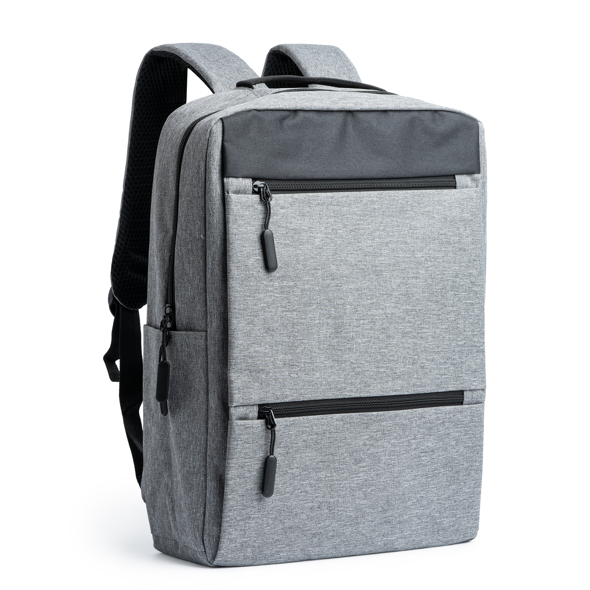 Zaino in poliestere 300D con finitura OXFORD. Tasca principale imbottita per il computer, porta USB per alimentatore portatile (non incluso), tasche frontali e laterali, spalline e schienale imbottiti. Dimensioni: cm 31x43x16. Imballo: 20pz.