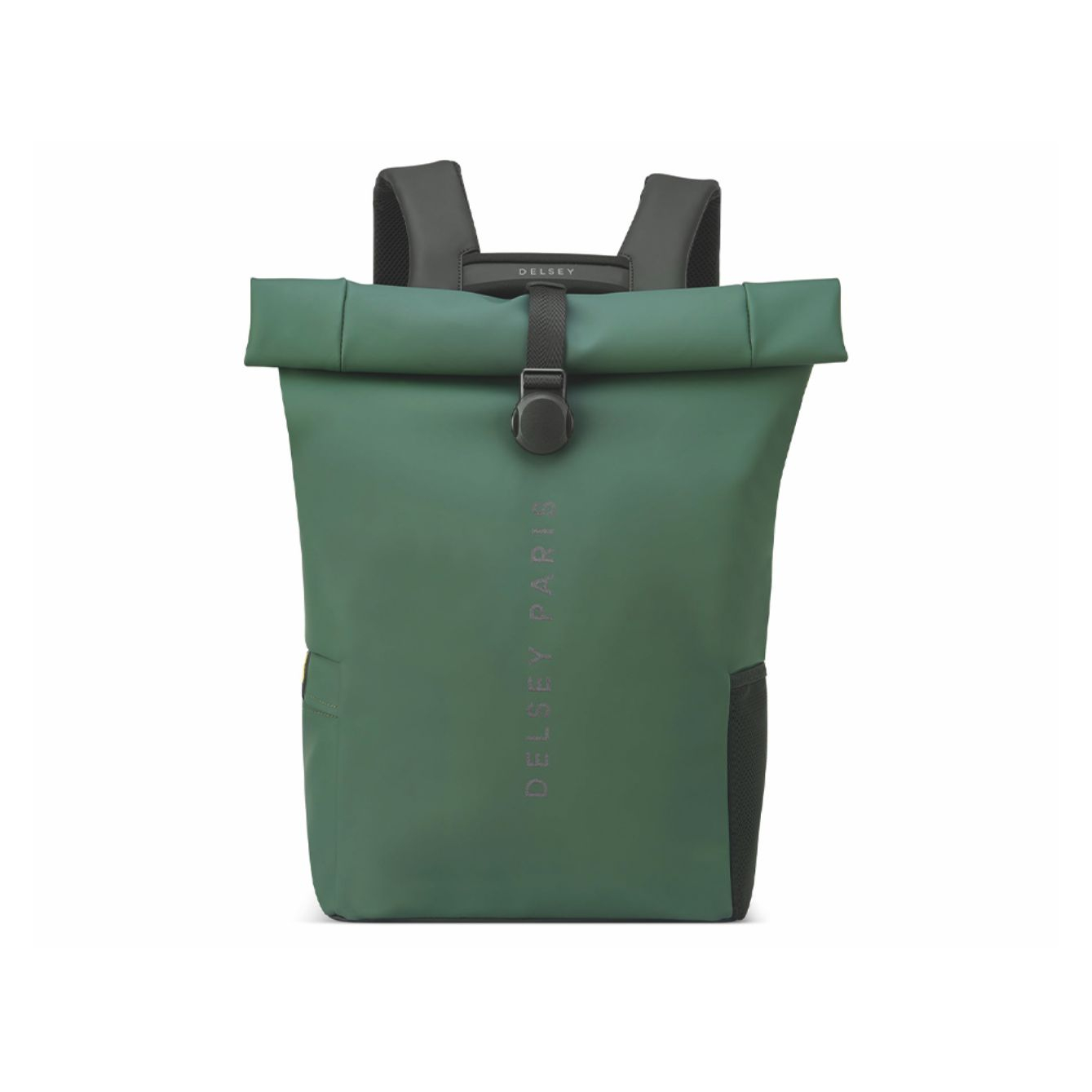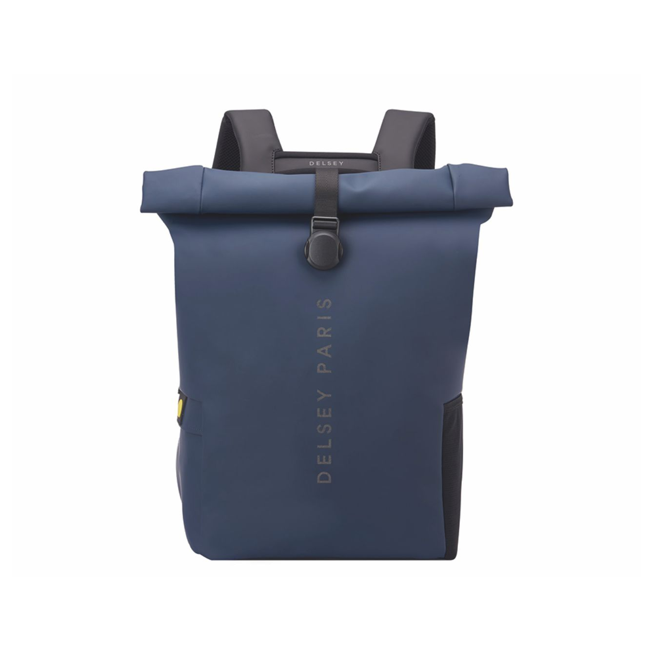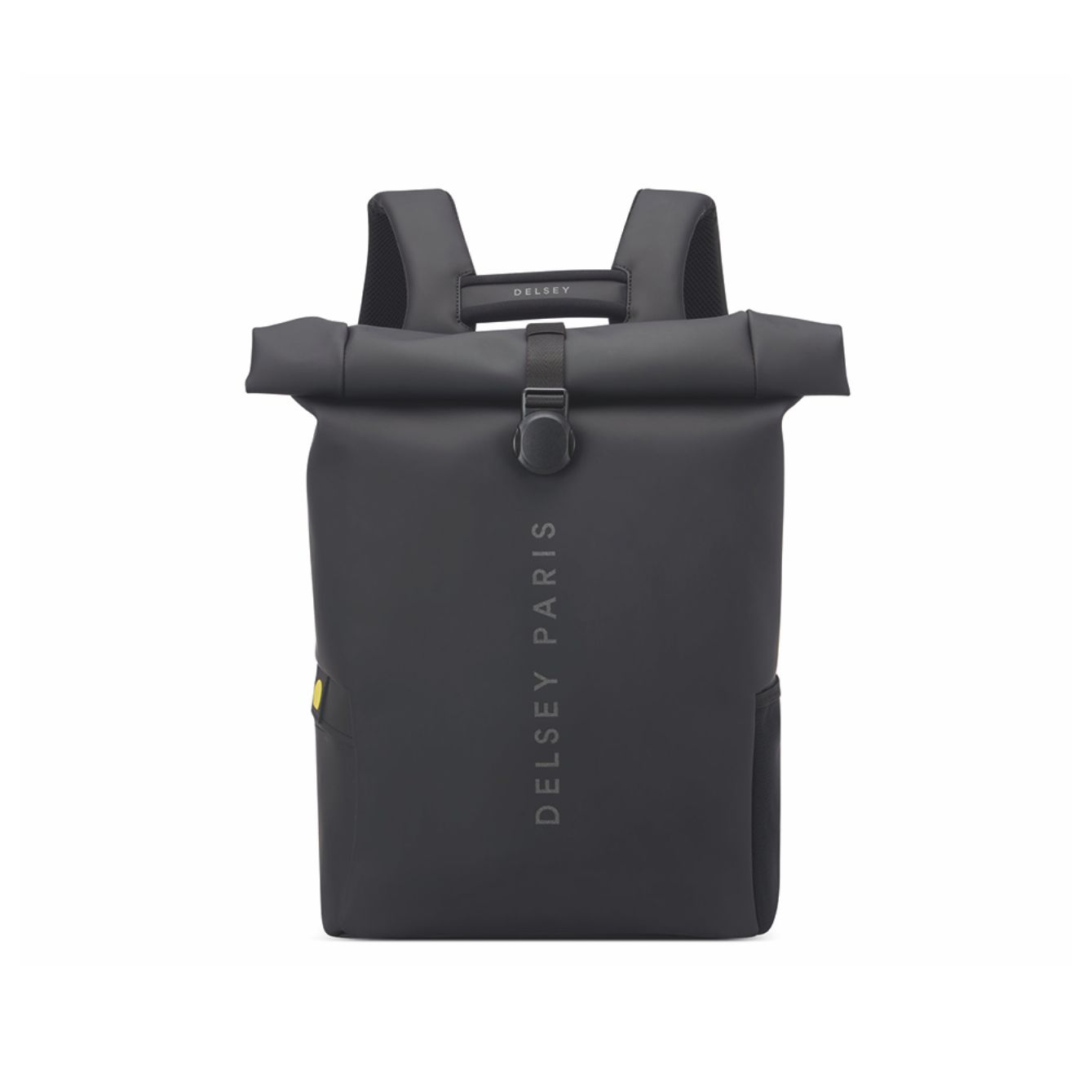 Zaino viaggio avvolgibile, realizzato con materiali ricicliati, protezione del PC, sistema di protezione RFID, compatibile con il sistema trolley. In PU riciclato. Dimensioni: cm 46x40x14 - 26 Litri