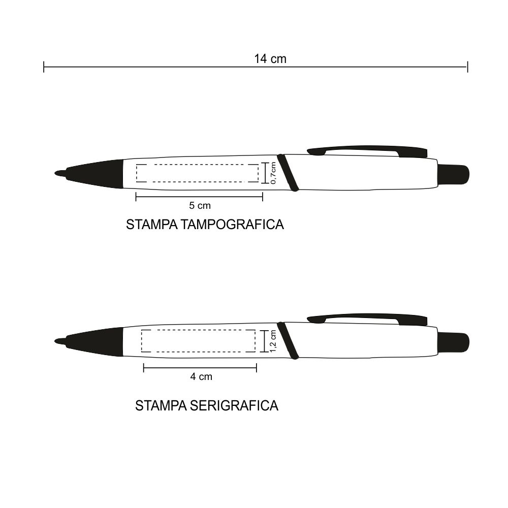 Penna sfera a scatto in plastica clip metallo. Fusto colorato. Refill nero. Colori: vedi catalogo/sito. Imballo: 1000xcolore