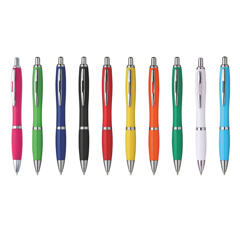 Penna sfera a scatto in plastica con clip in metallo. Fusto colorato. Refill nero. Colori: vedi cata-logo. Imballo: 1000xcolore