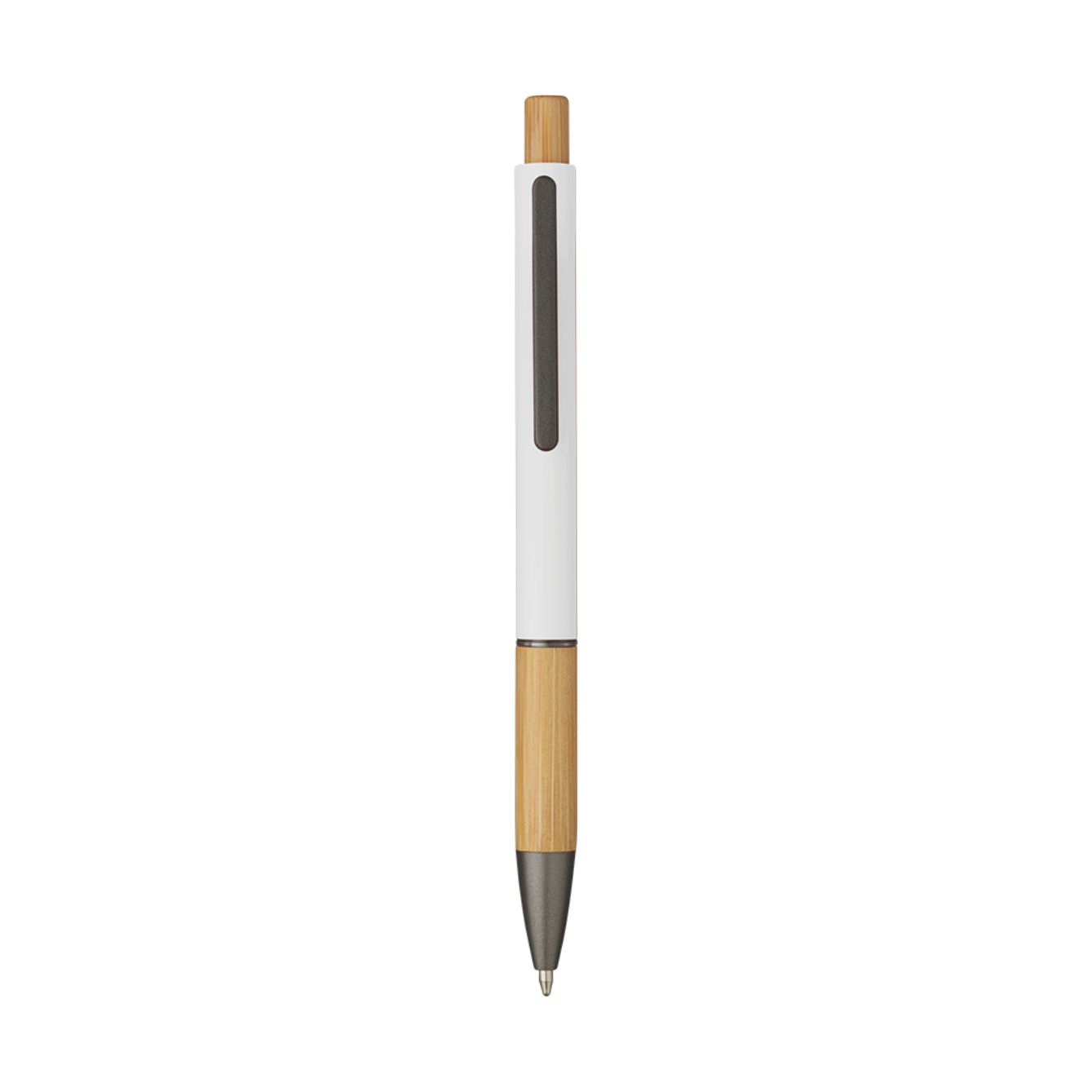 La penna sfera Eloisa unisce stile e natura in un'unica soluzione per scrivere con eleganza. Realizzata in alluminio con finitura in rubber e bamboo, offre una scrittura fluida e confortevole. La clip in alluminio garantisce una presa comoda e sicura. Il