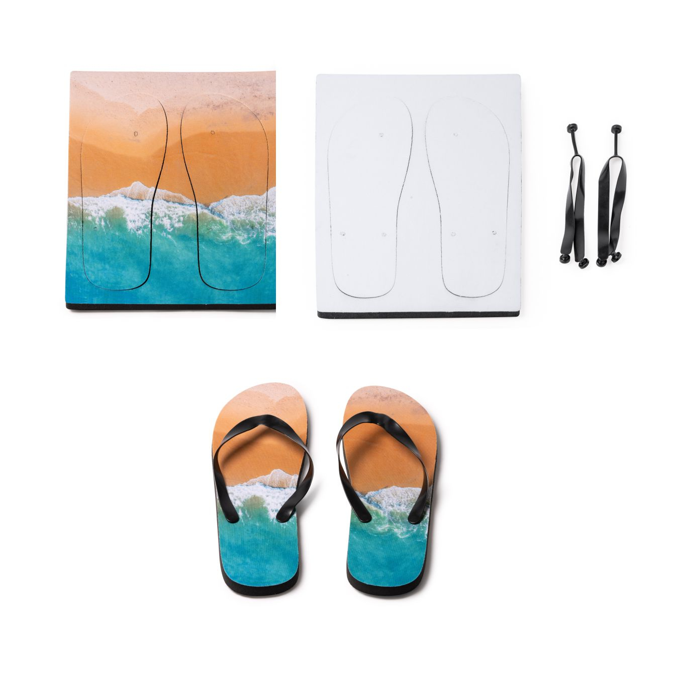Infradito per sublimazione con comoda suola in PE. Dimensioni: cm 19x33x0,6