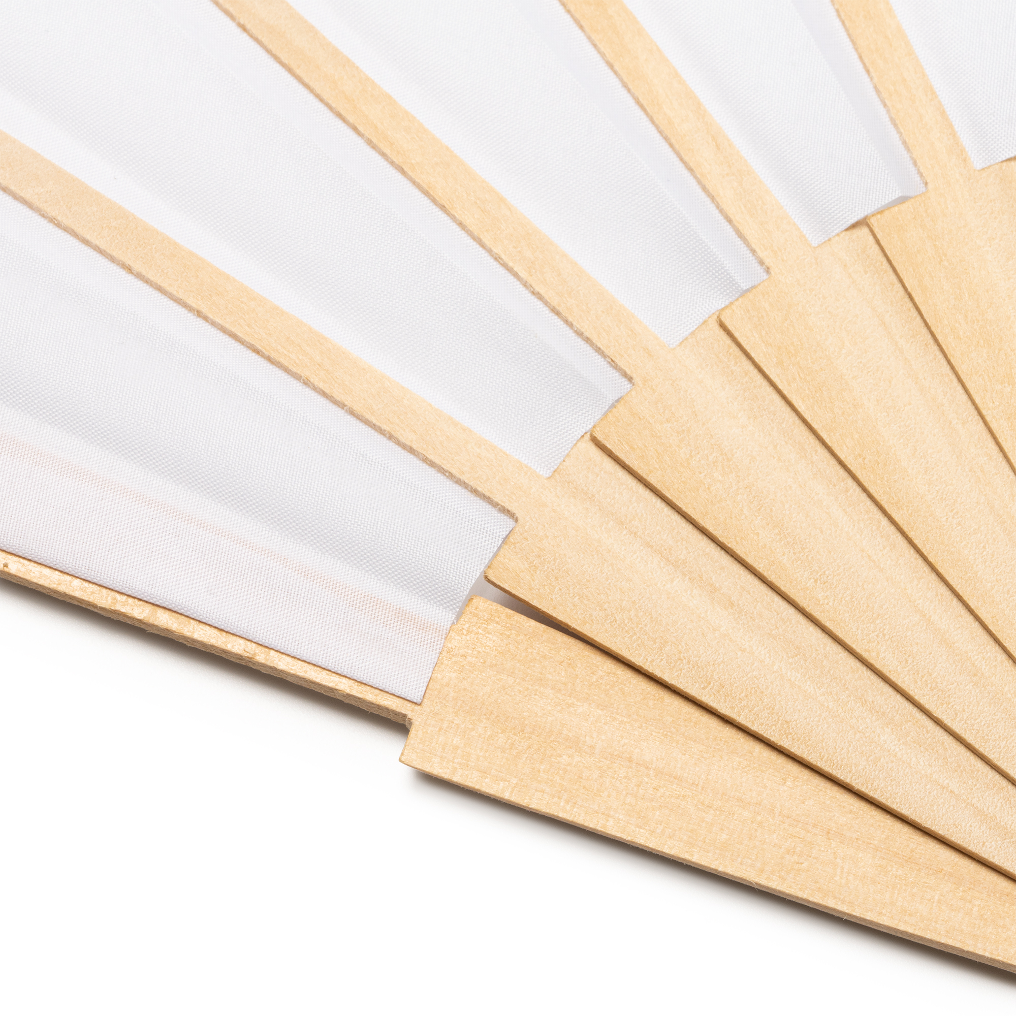 Ventaglio in legno e tessuto RPET. In scatola eco. Dimensioni: cm 42,5x23. Imballo: 250pz.