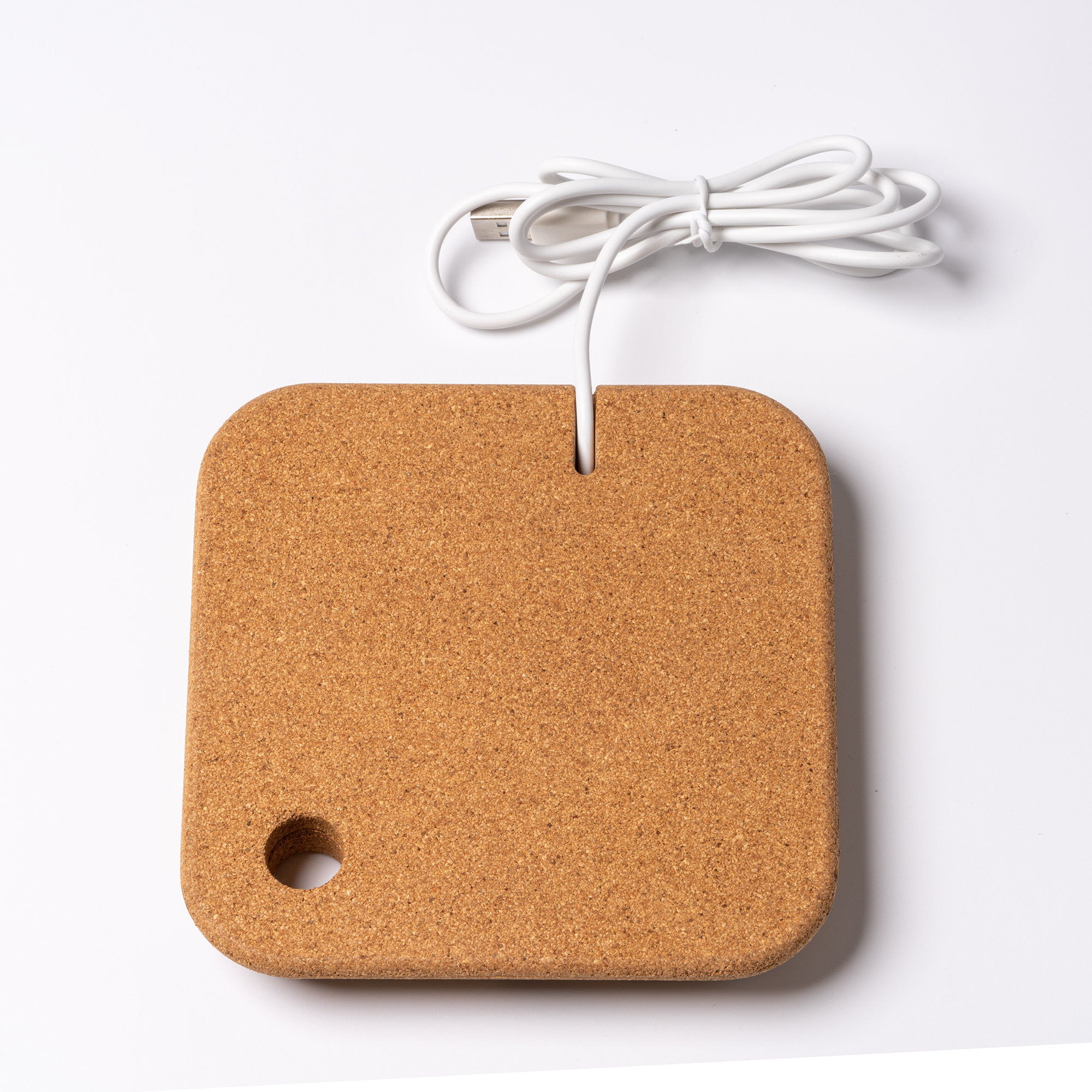 Caricabatterie wireless in sughero e bamboo da 10W con supporto cellulare e porta penne. Dotato di un cavo di tipo C integrato.In scatola dal design ecologico. Dimensioni: cm 12,6x2,1x12,6