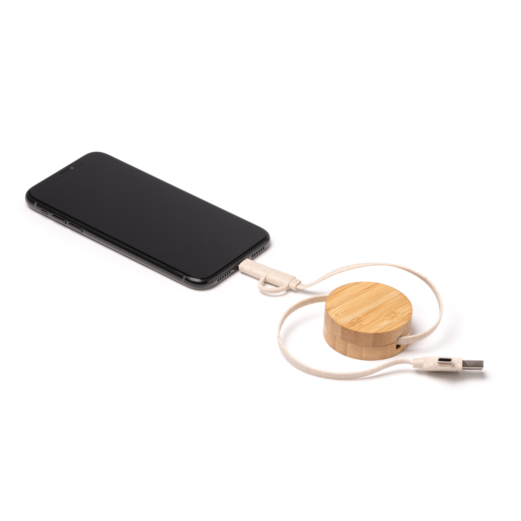 6116 Artur - Cavo Di Ricarica Estendibile In Bamboo E Fibra Di Frumento