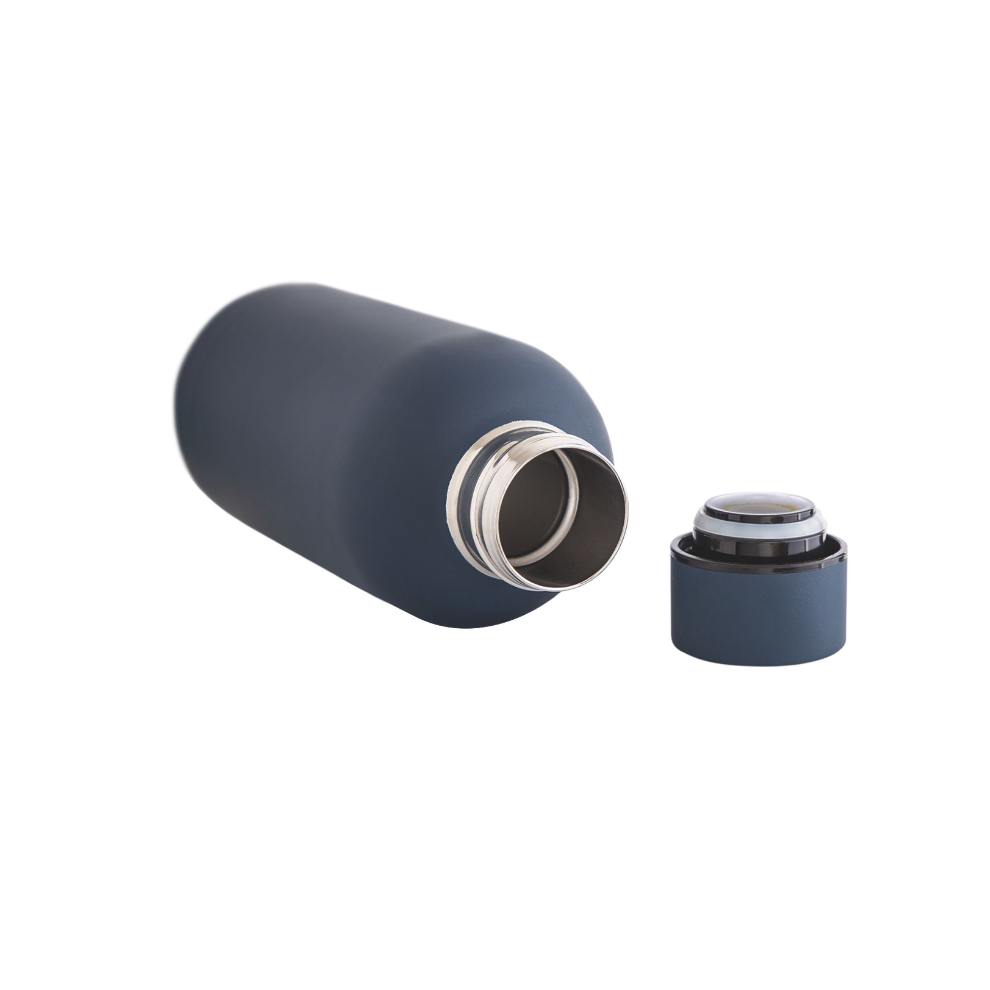 Borraccia da 750ml in acciaio Inox 304 con doppia parete e finitura soft touch. Confezione in astuccio. Dimensioni: cm 7,8 H 26. Imballo: 25pz.