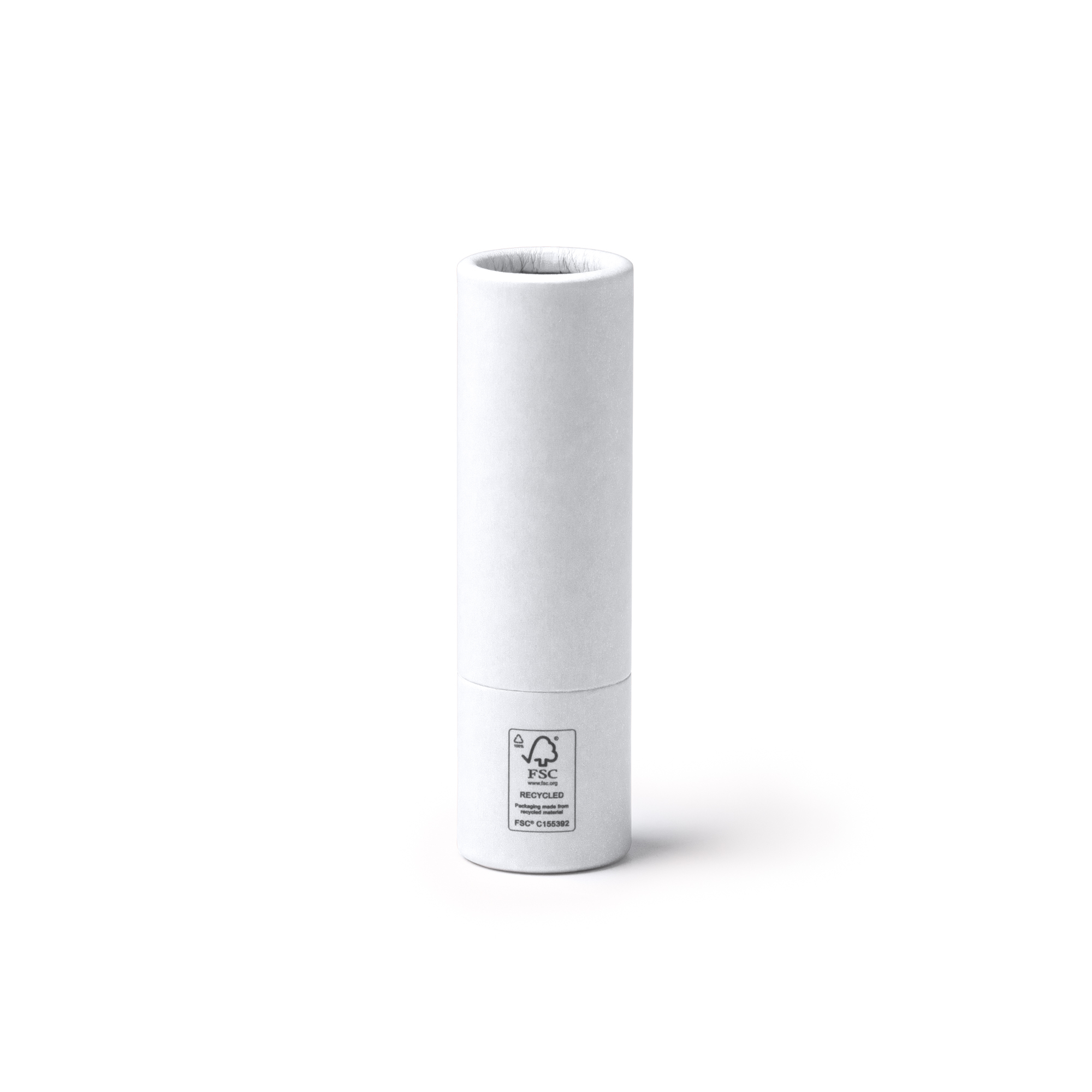 Balsamo per labbra in un astuccio di cartone riciclato. Certificazione FSC. Protezione SPF15. Dimensioni: cm 8x2Ø