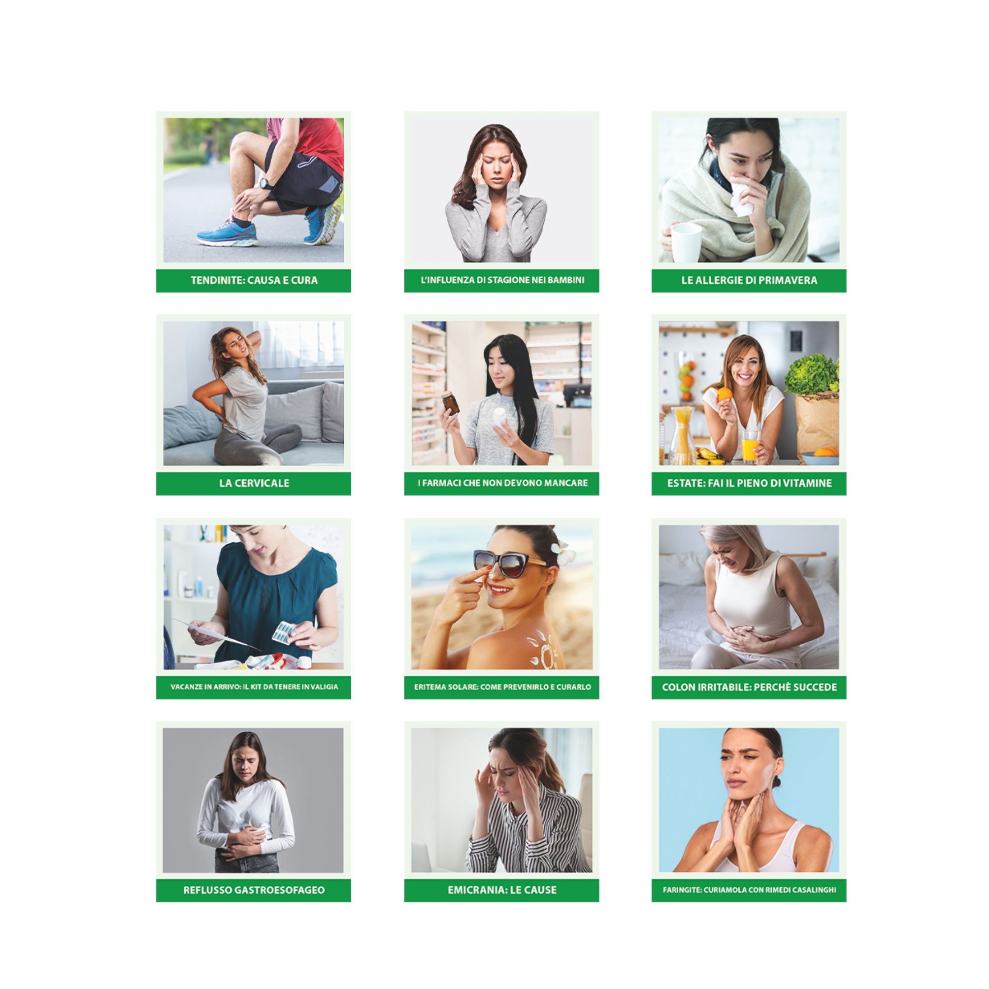 Calendario Consigli del Farmacista Trimestrale 12 fogli. Carta patinata. Dimensioni: cm 14x47, testata cm 14x9. Imballo: 100pz