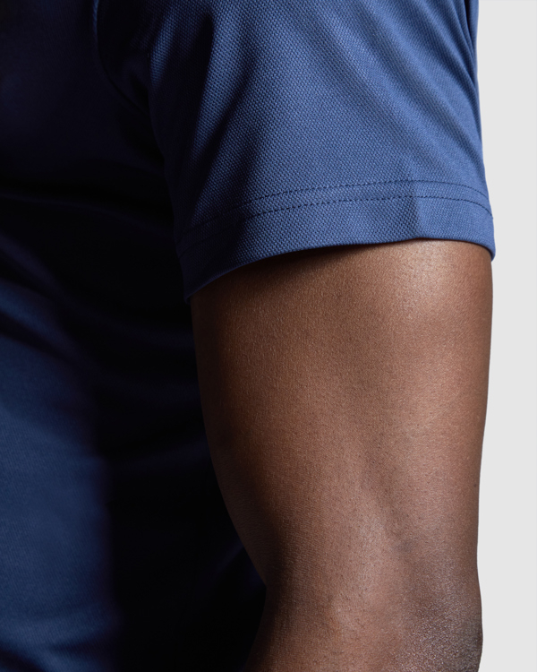 Polo tecnica con manica corta. Collo tricot con chiusura a tre bottoni. Tessuto traspirante facile lavaggio e asciugatura.
