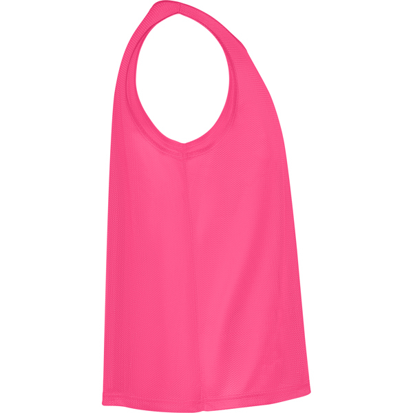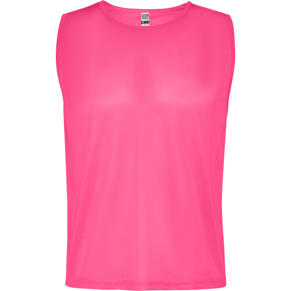 Pettorine sportive traspiranti unisex.· Bordo cucito con lo stesso tessuto del giromanica e sul collo. · Doppia cucitura sull'orlo.