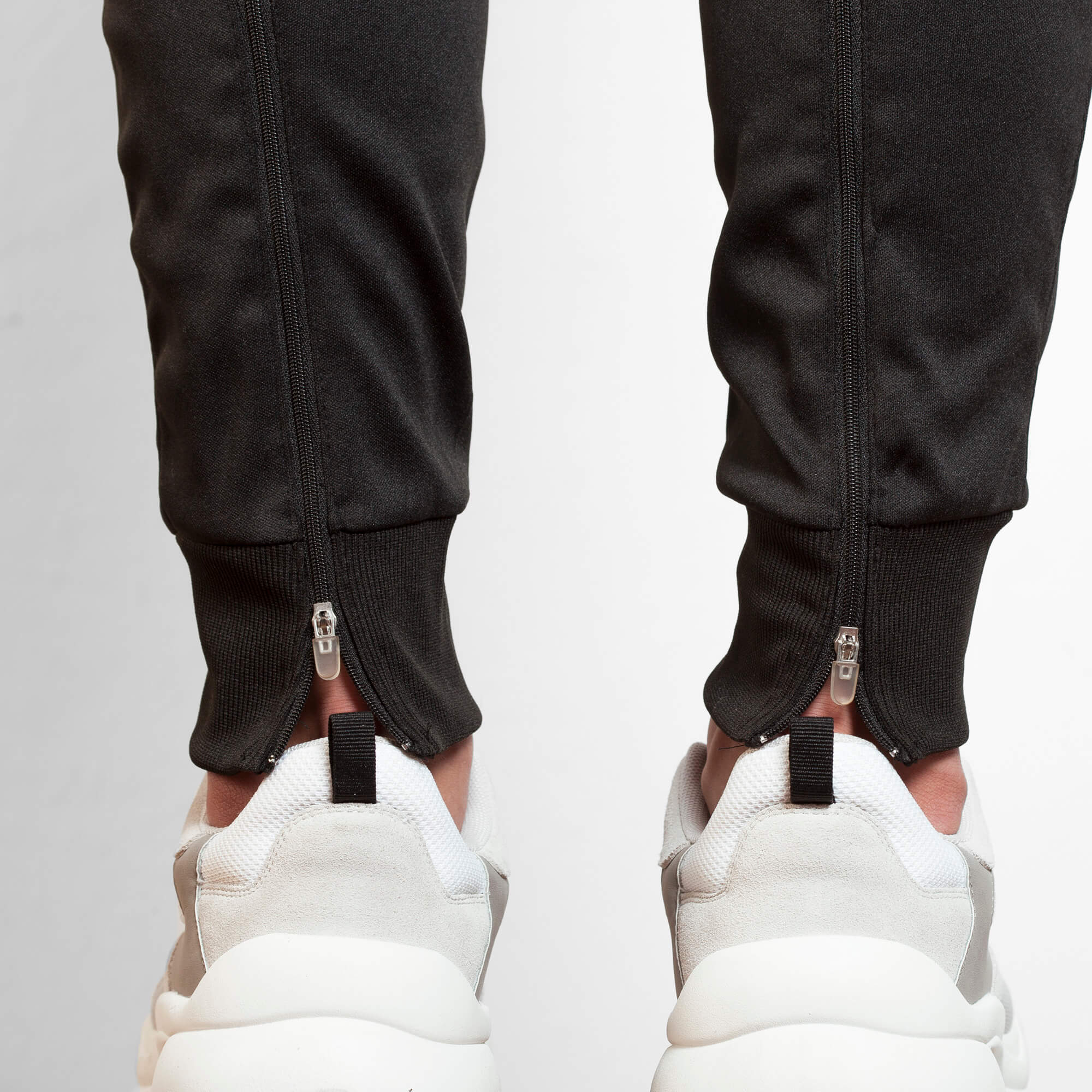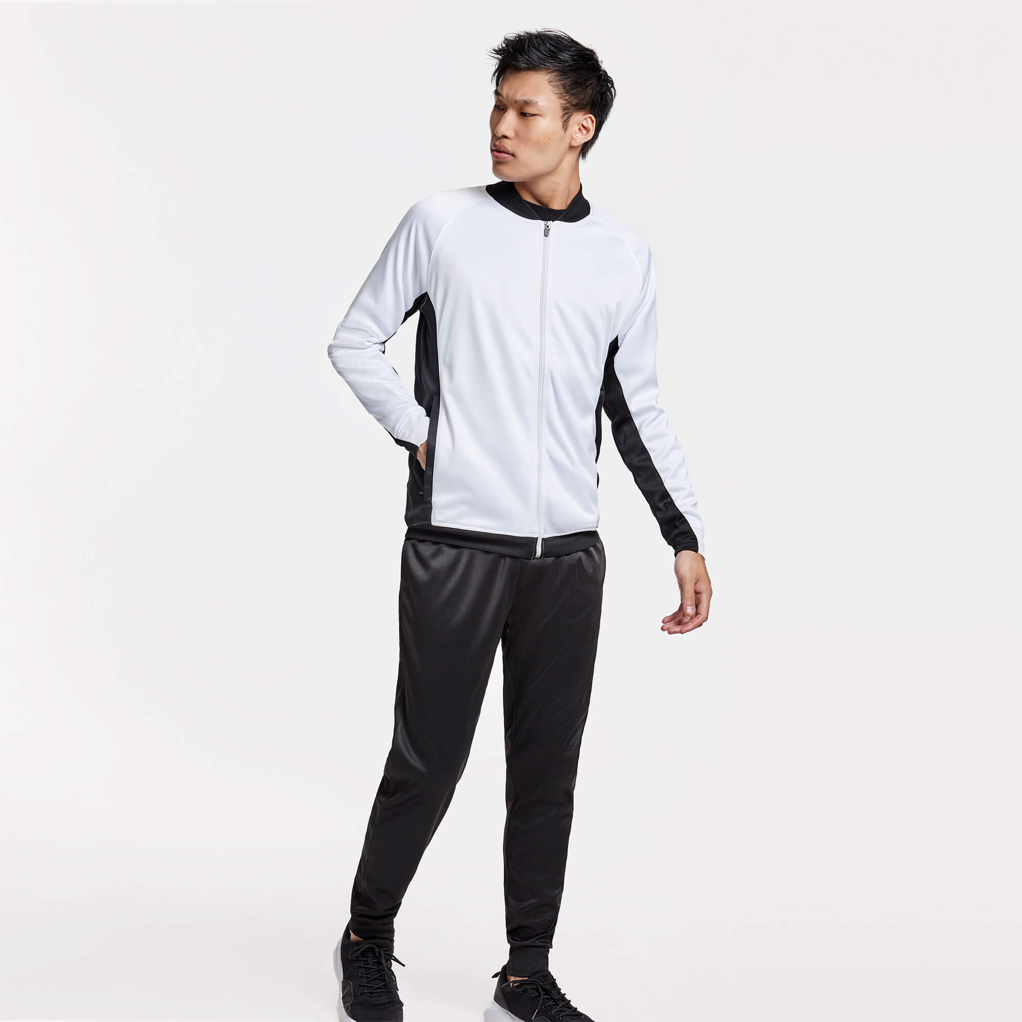 Panatalone lungo per allenamento, con cintura elastica regolabile con cordoncini interni. Tasche laterali. Parte inferiore con polsini e cerniera.