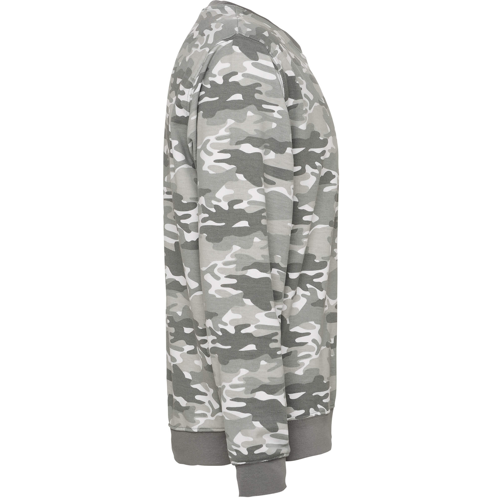 Felpa camouflage, girocollo in costina della stessa tonalità di colore. Girovita e polsini in costina 1x1 di elastane.