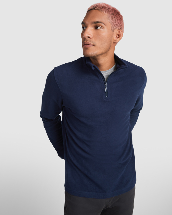 Micropile con collo alto e mezza cerniera riparata nella parte finale, polsini elasticizzati in tono.