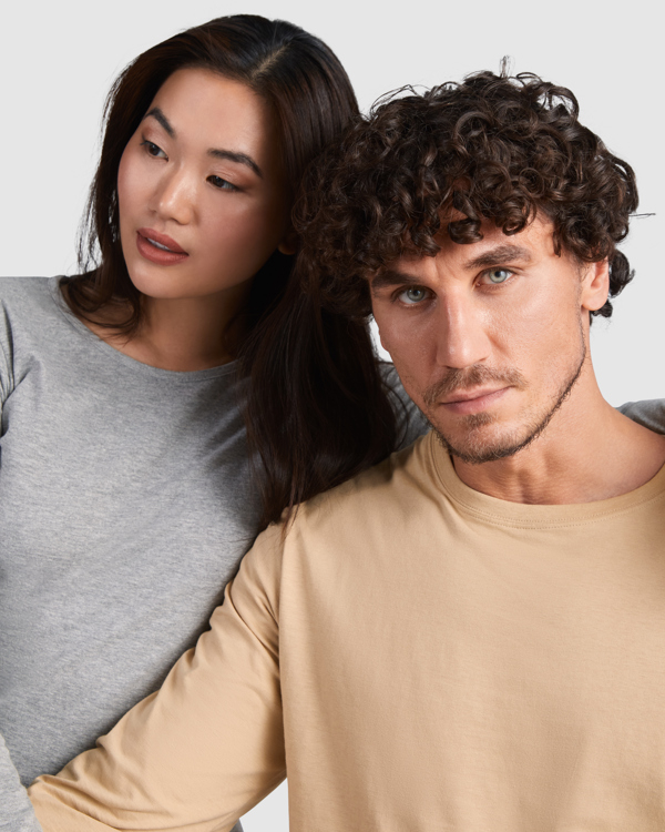 Maglietta manica lunga, tessuto tubolare, girocollo a 4 strati. Cuciture rinforzate su collo e spalle. Senza polsini.