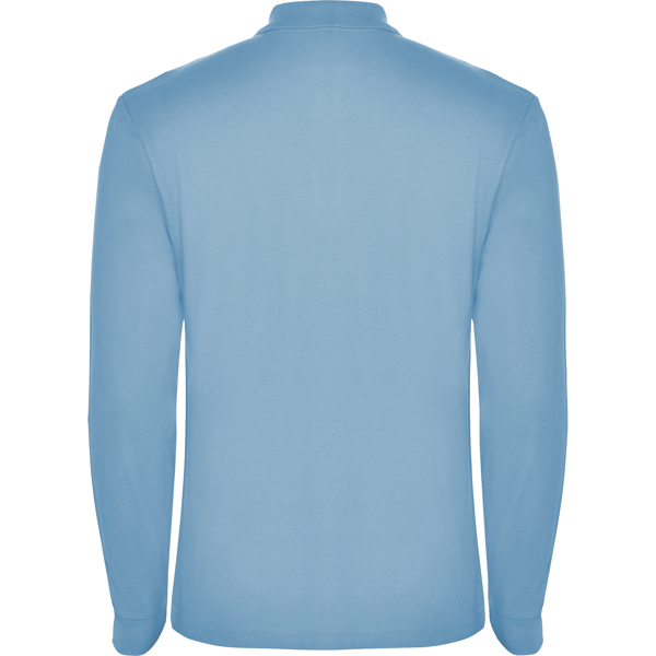 Polo manica lunga, colletto e polsini in costina, tre bottoni e polsini in costina 1x1 di elastane. Cuciture ribattute e rinforzate sul colletto.