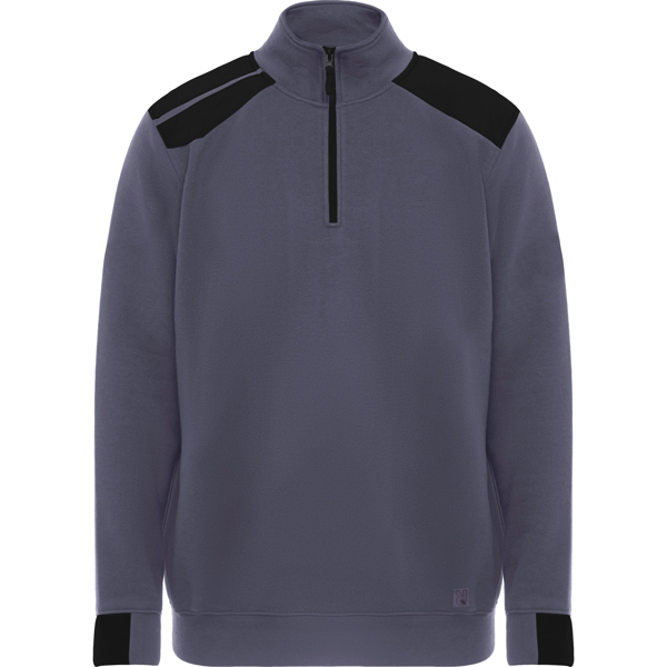 Felpa mezza zip e collo alto in colori misti. Mezzo polsino e orlo in maglia a coste 1x1. Copri cuciture rinforzate all'interno del collo. Spalle e dettagli a contrasto.
