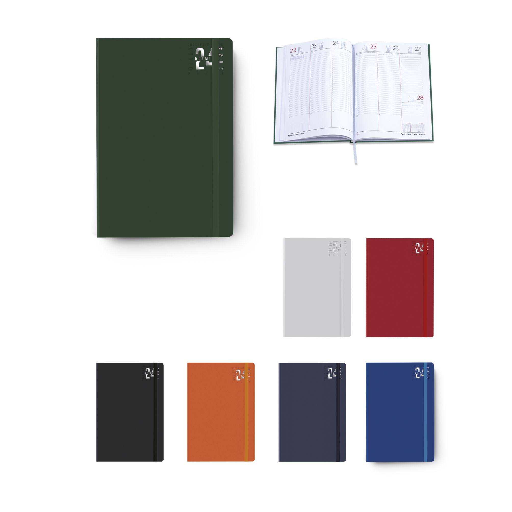Agenda “Dynamic” settimanale con elastico. Materiale: Matra. Interno stampa 2 colori. Carta bianca. Multilingue. Cartina geografica, rubrica telefonica. Colori: blu, rosso, nero, verde, royal, arancio. Dimensioni cm. 17x24 Imballo: 20xcolore