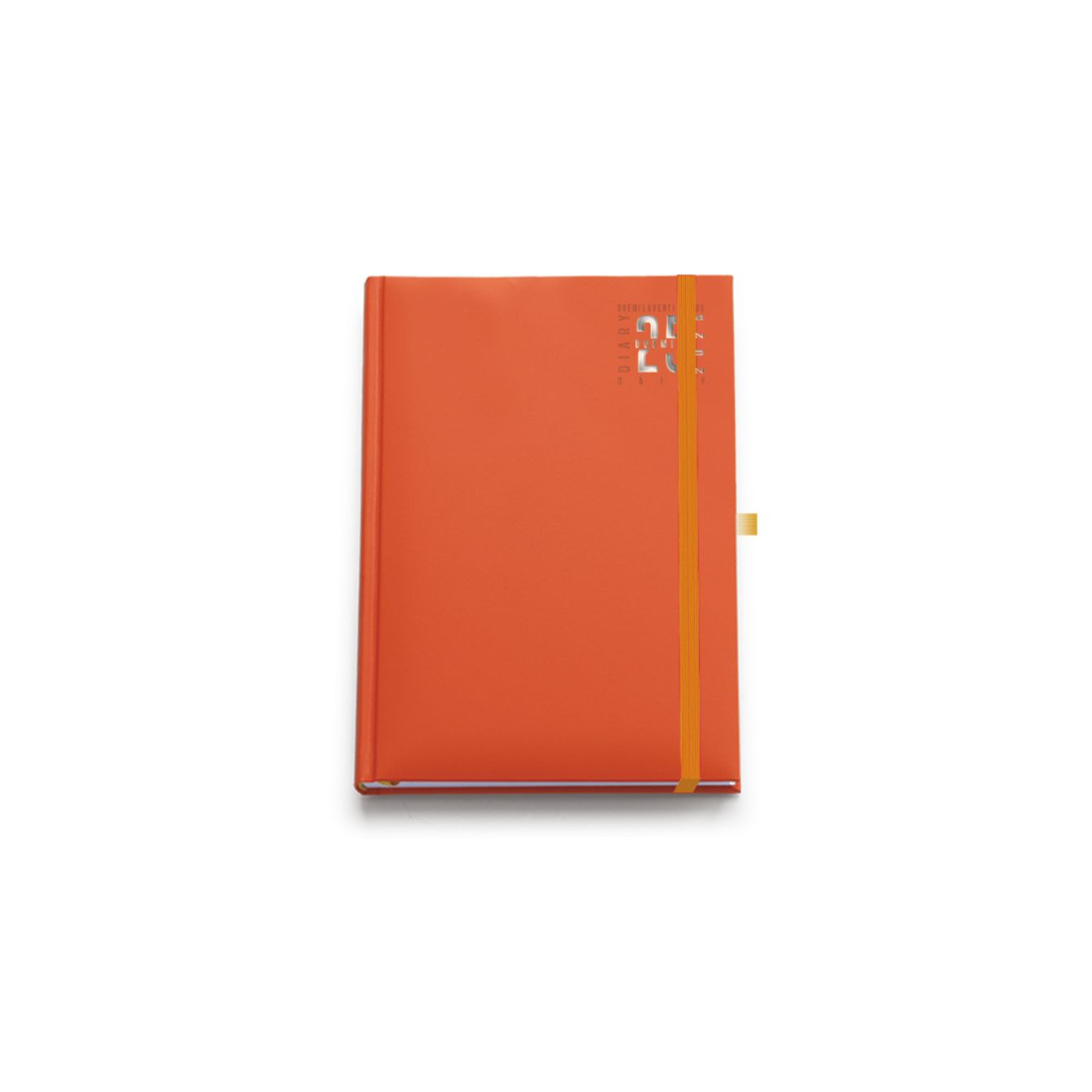Agenda giornaliera con elastico. Materiale: matra. Interno stampa 2 colori. Carta bianca usomano. Rubrica telefonica. Colori: blu, rosso, nero, verde, royal, arancio, verde acqua, bianco, verde sme-raldo. Dimensioni 11x17