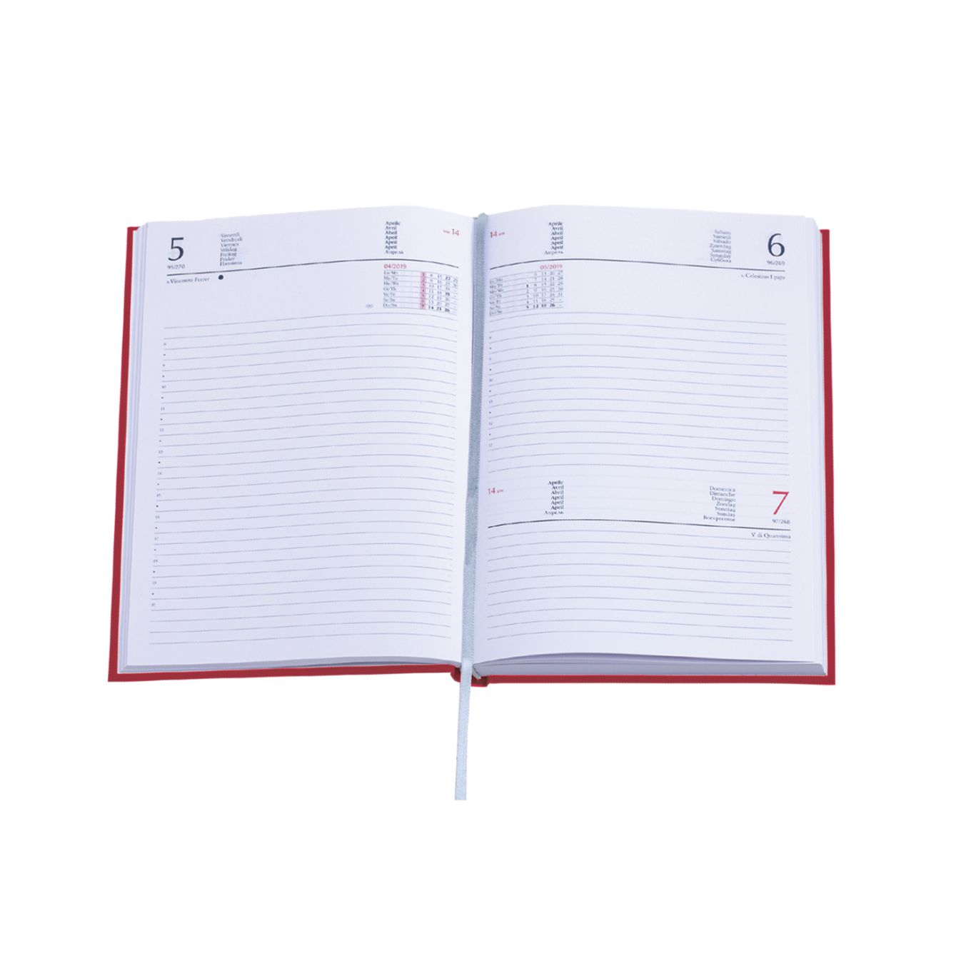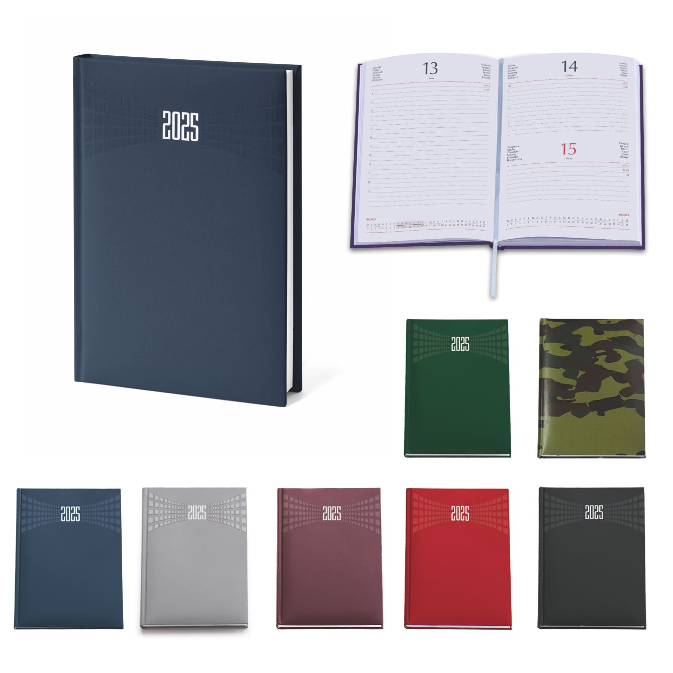 Agenda giornaliera in matra. Interno stampa 2 colori. Multilingue. Sabato e domenica abbinati, rubrica telefonica, cartina geografica, festività nel mondo. Colori: verde, blu, bordeaux, nero, rosso, grigio, camouflage. Dimensioni cm 15x21 Imballo: 20xcolore