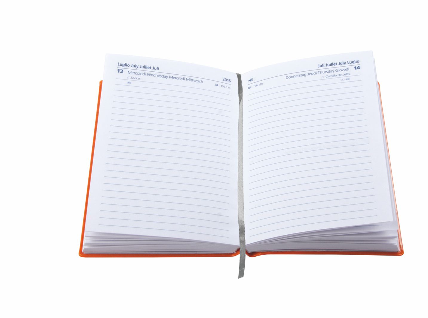 Agenda pocket in tam. Interno mobile giornaliero (9x13). Stampa 2 colori. Multilingue. Sabato e domenica abbinati, rubrica telefonica. Colori: arancio, rosso, nero, blu, sky, verde, royal, grigio, bianco. Fornita senza astuccio. . Dimensioni cm 9x13