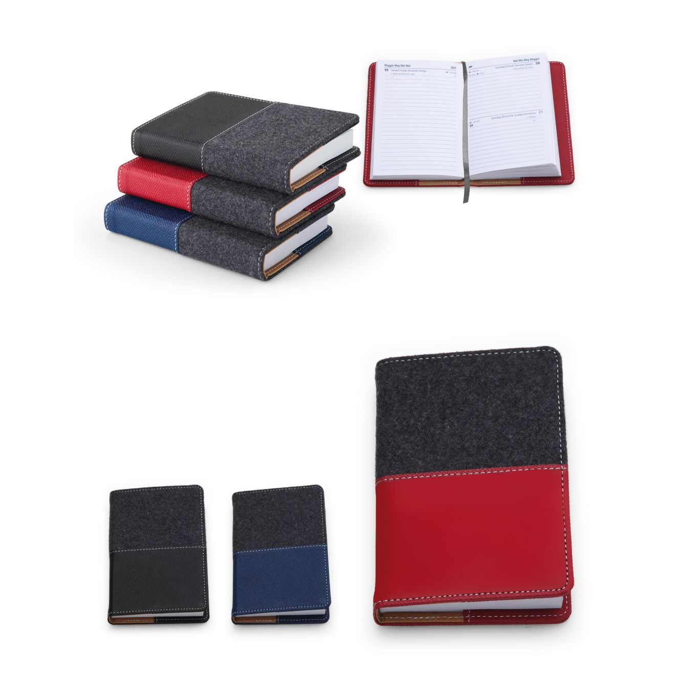 Agenda pocket in materiale termovirante e feltro. Interno mobile giornaliero (9x13). Stampa 2 colori. Rubrica telefonica, dati personali, festività nel mondo. Colori: nero, rosso, blu. Confezio-ne in astuccio. Dimensioni cm. 10x14 Imballo: 30xcolore