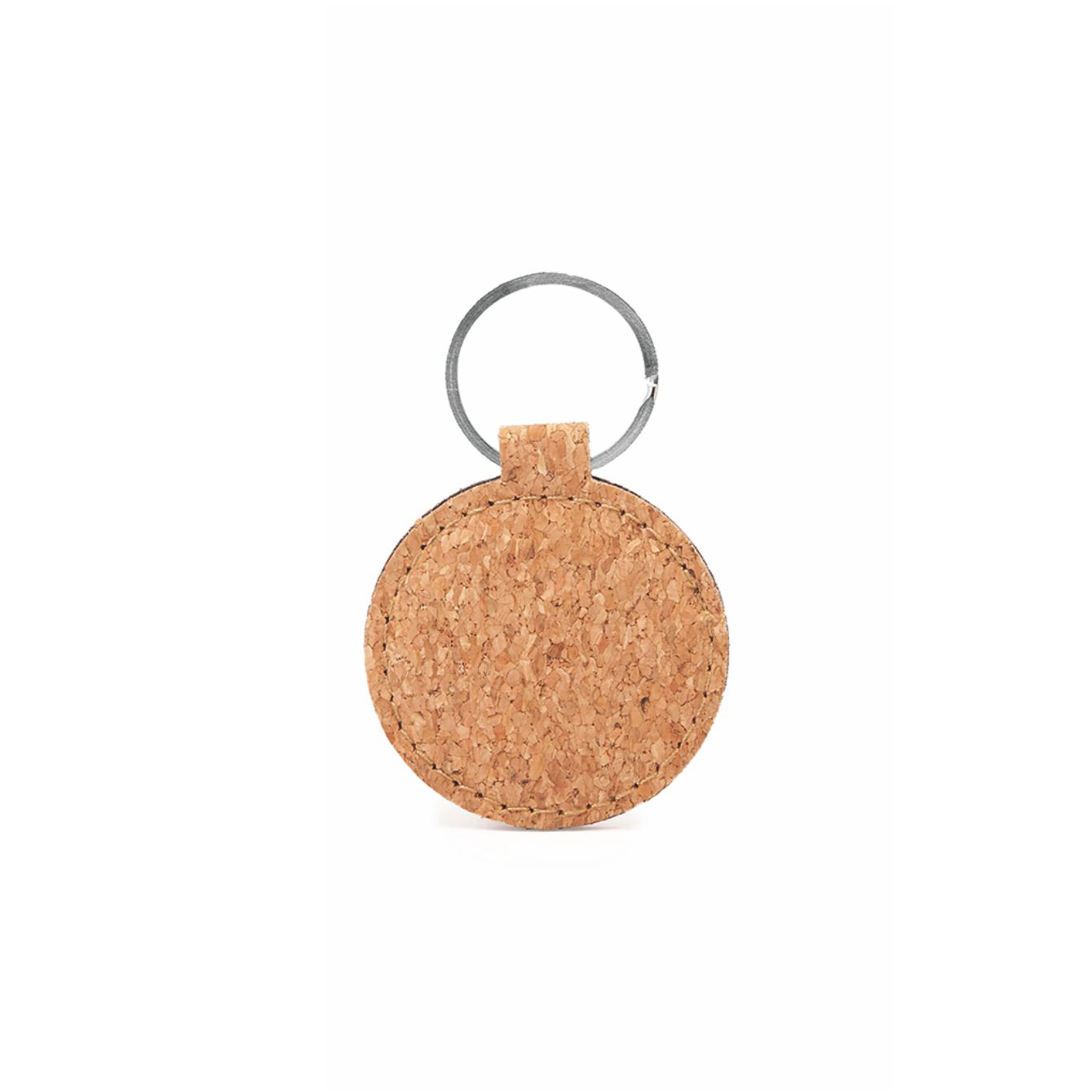 Classico portachiavi in sughero naturale con anello in metallo. Due modelli: rettangolare (3,9 x 0,6 x 8,1 cm) e rotondo (0,6 x 7,9 x 4,9 cm). - Confezione in busta con cartoncino bianco.