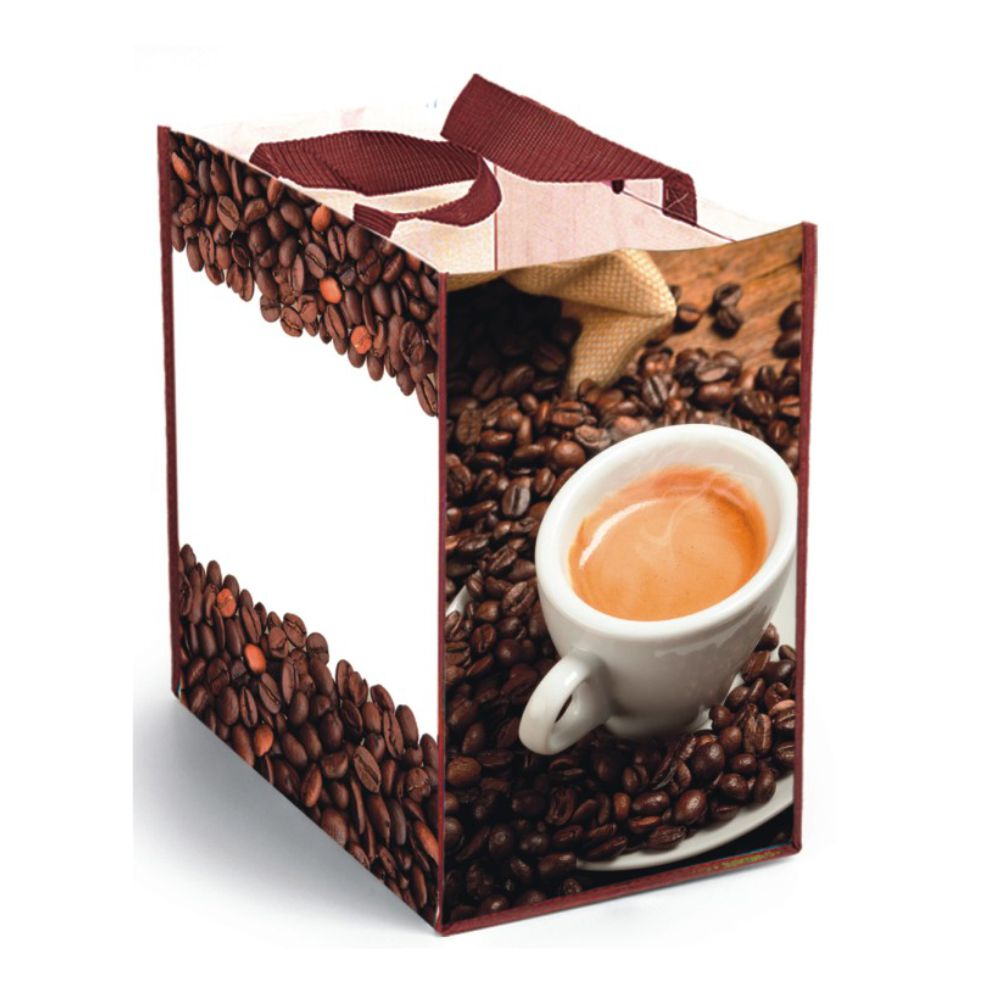 Borsa shopping PP “Caffe”. Doppio manico. Chiusura con bottoncino. . Dimensioni cm 35x35x22 Imballo: 100