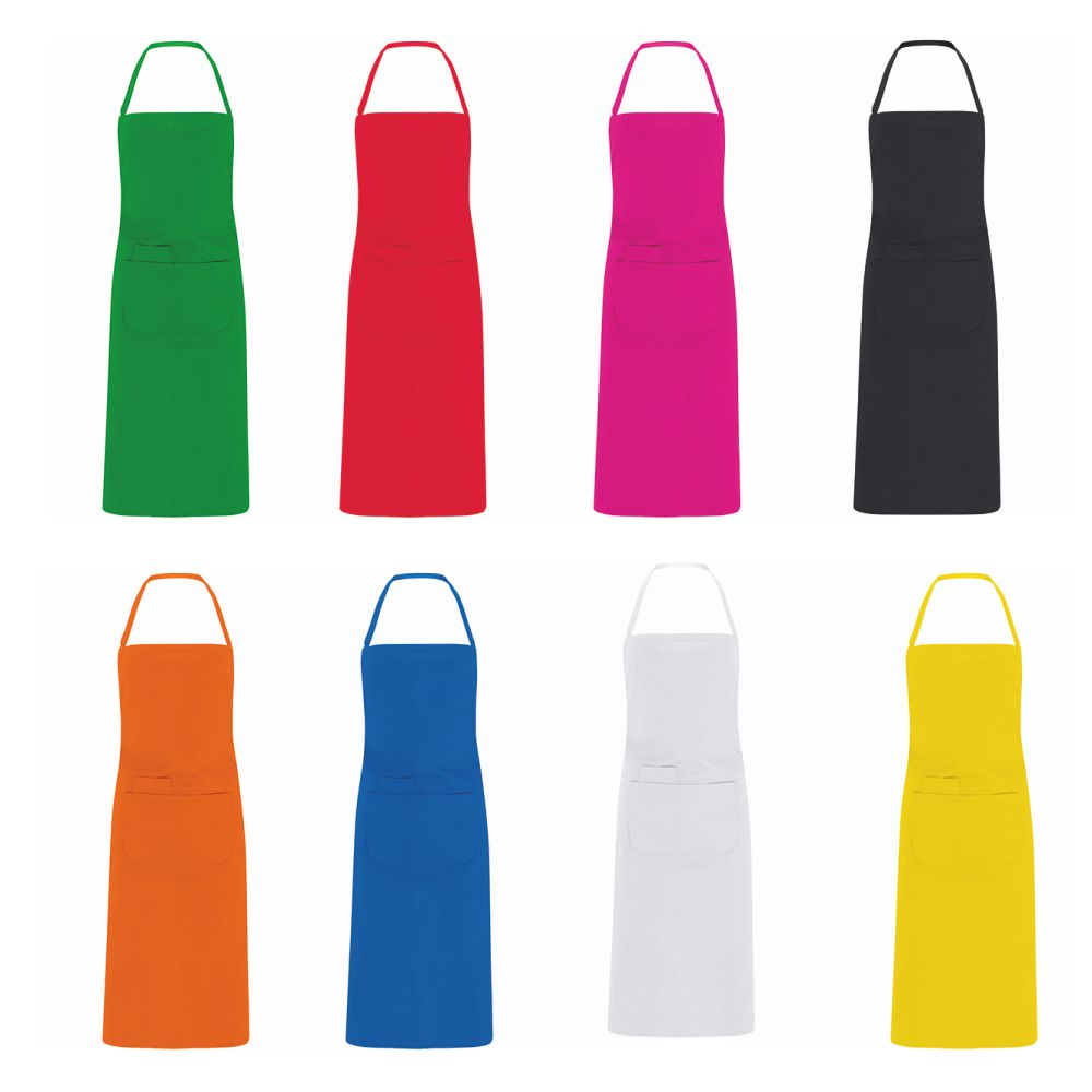 Grembiule lungo 90% Poliestere - 10% Cotone: 1. Nastro in tono nel collo 2. Due tasche frontali, uno interna e uno grande sovrapposto.