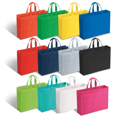 Borsa shopping TNT con soffietto (cm.10). Termosaldata. Doppio manico (cm.2x40). Colori: tiffany, rosso, blu, silver, nero, bianco, fuxia, arancio, verde, giallo, blu scuro, verde scuro. . Dimensioni cm. 42x32x10 Imballo: 100xcolore