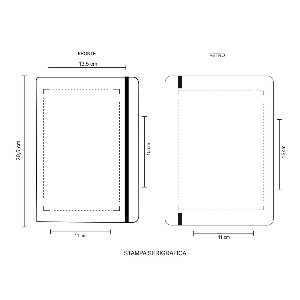 Blocco notes con elastico. Pvc. Interno composto da 120 fogli /240 pagine. gr.70 carta bianca. Confezione in polybag. Colori: verde, bianco, nero, rosso, blu, royal, arancio, oro, silver. . Dimensioni cm.13,5x20,5 Imballo: 50xcolore