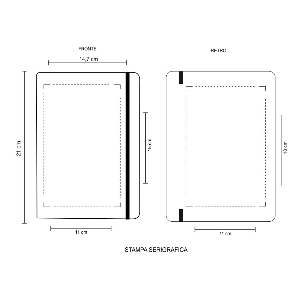 Blocco note formato A5 con copertina rigida in cartone riciclato. Chiusura elastica e segnapagina coordinati. 100 pagine.