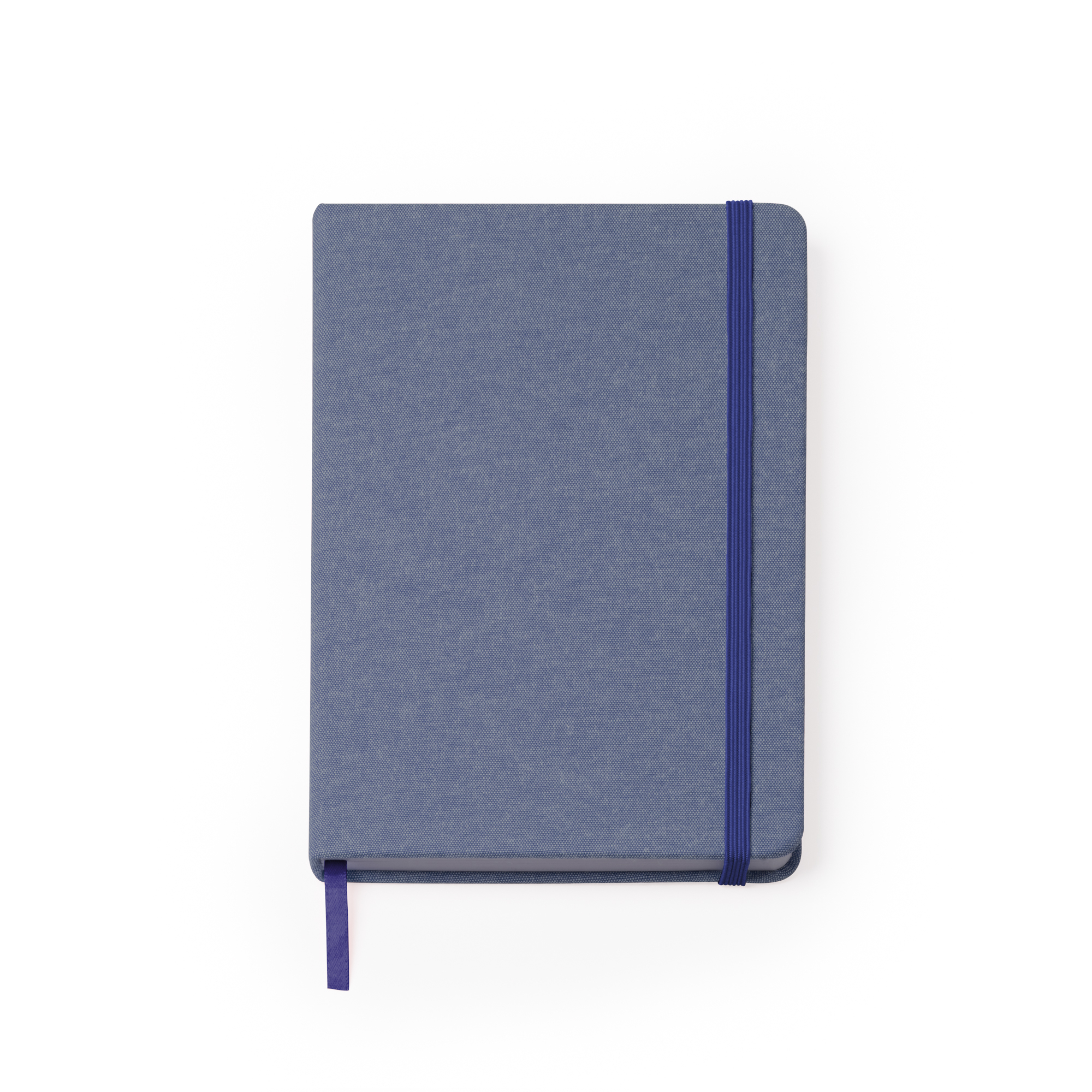 Quaderno A5 con copertina in cotone. Segnapagina ed elastico. 100 fogli bianchi. Dimensioni: cm 14x21x1,5