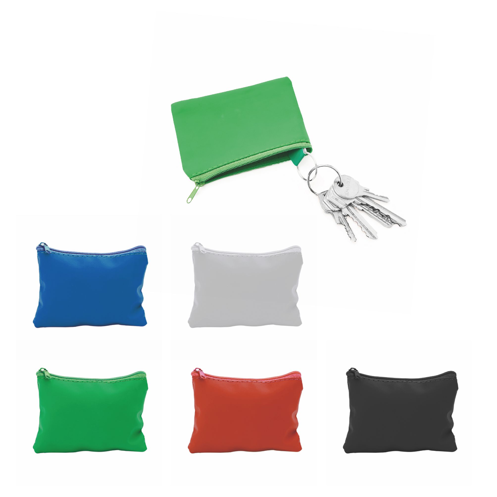 Portachiavi portamonete. Borsa con zip e tiretto in tinta. In PU Termovirante. Dimansioni: cm 10,5x7,5. Imballo: 1000pz.