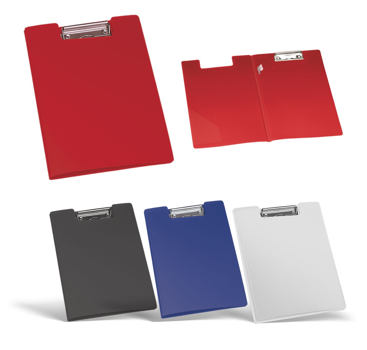 Porta blocco 2 ante, in pvc, con pressino. Tasca porta documenti, inserto per penna. Colori: blu, bianco, rosso, nero. Confezione in polybag. Dimensioni cm 24x33,5 Imballo: 100xcolore