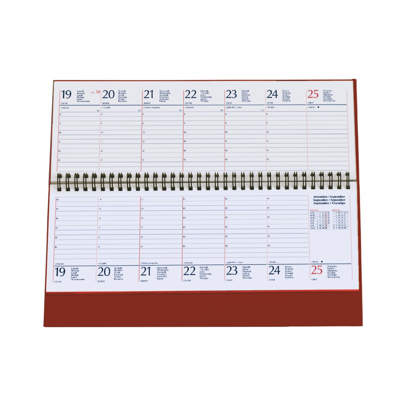 Planning spiralato in matra. 128 pagine. Carta usomano bianca 70 gr. Interno stampa 2 colori, datato. Colori: blu, verde, bordeaux, nero, rosso, grigio. Dimensioni cm 30x15 Imballo: 20xcolore