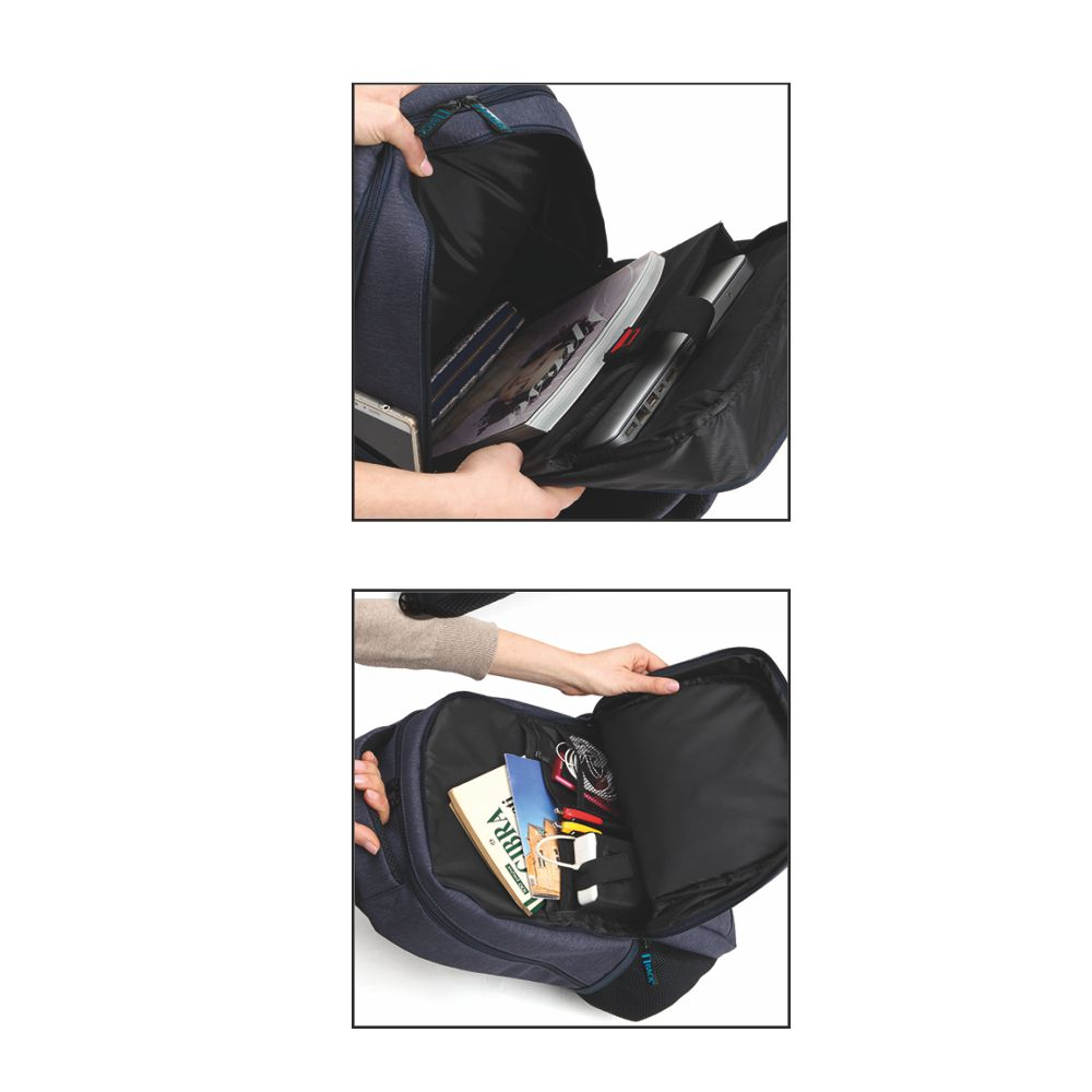 Zaino backpack porta computer 15” in poliestere 600D Oxford. Doppio soffietto chiuso da zip con doppio cursore in plastica. Corredato di vari taschini interni: porta cellulare, porta penne, por-ta documenti. Taschini esterni elastici. Tasca anteriore chiusa da zip. Schienale e spallacci imbottiti e regolabili. Corredato di manico imbottito. Colori: blu, grigio, nero. Confezione in polybag. Dimensioni cm. 44x29x15,5 Imballo: 12xcolore