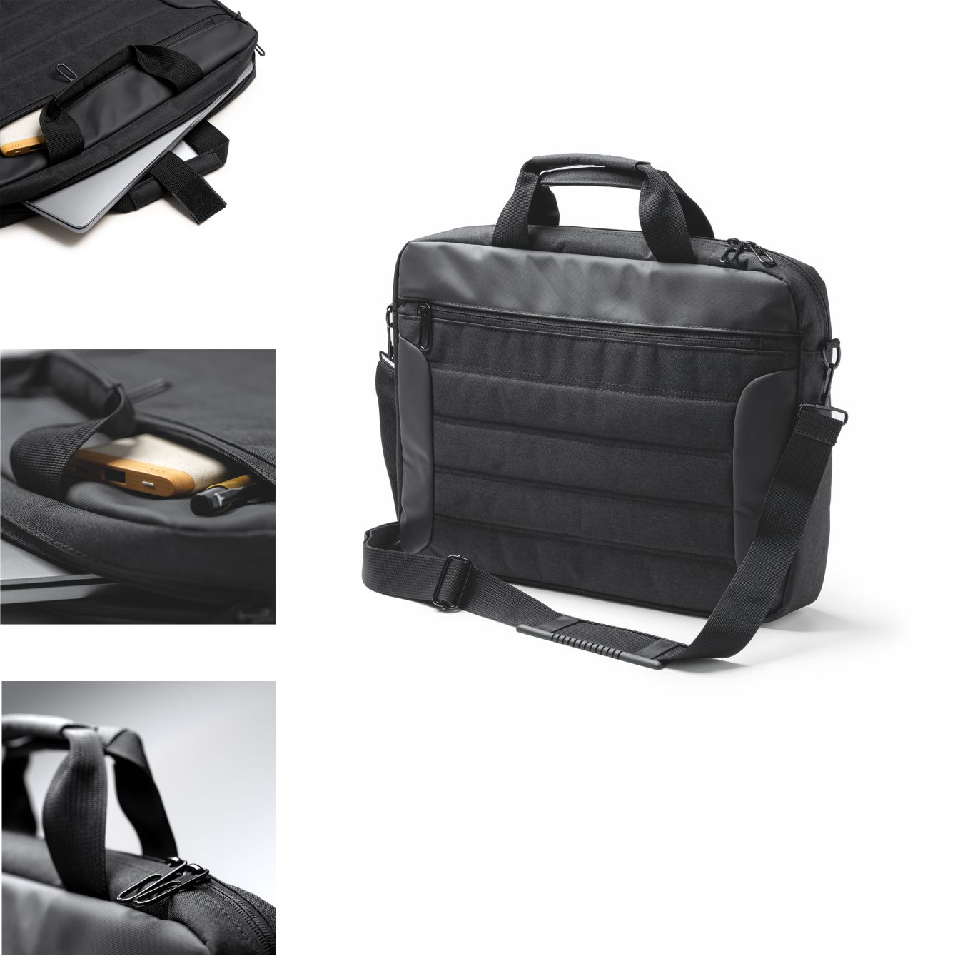 Portadocumenti imbottito per laptop in pelle PU. È dotato di due spaziosi scomparti, maniglie per il trasporto, tracolla regolabile. Dimensioni: cm 40x29,5x5,5