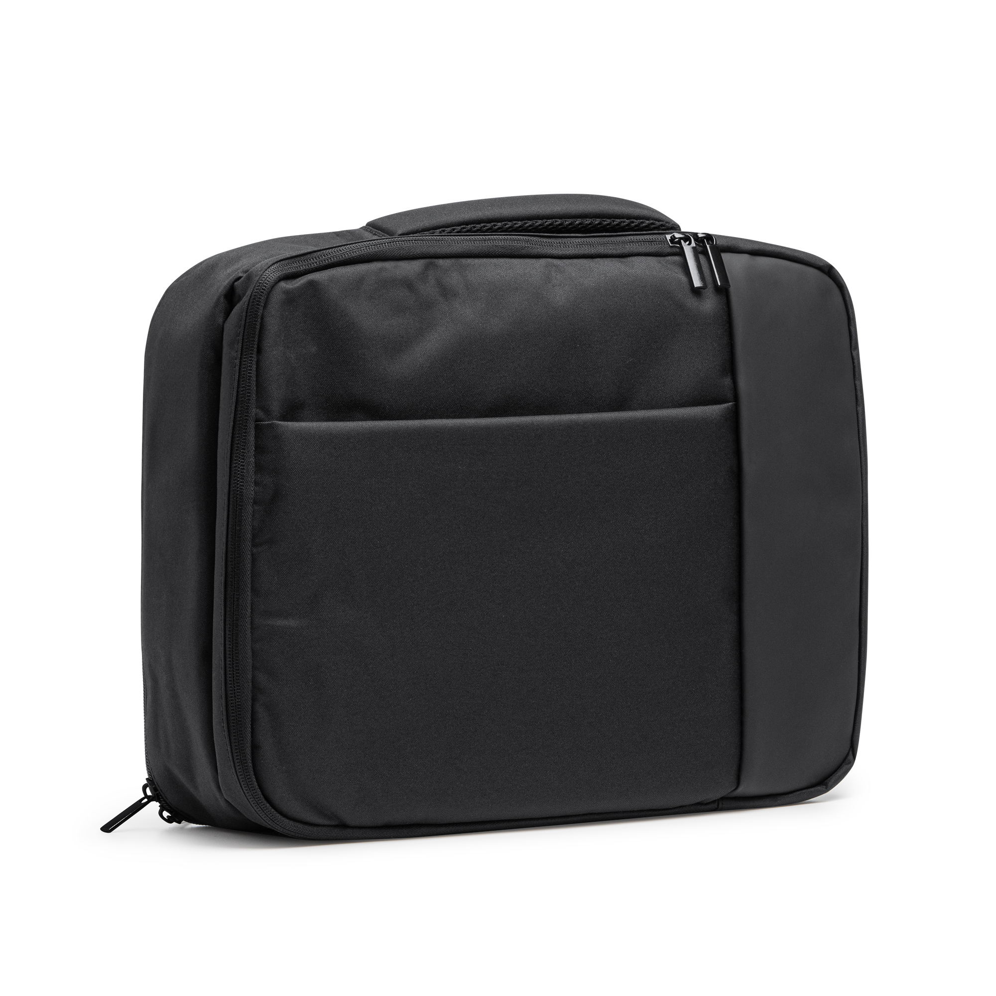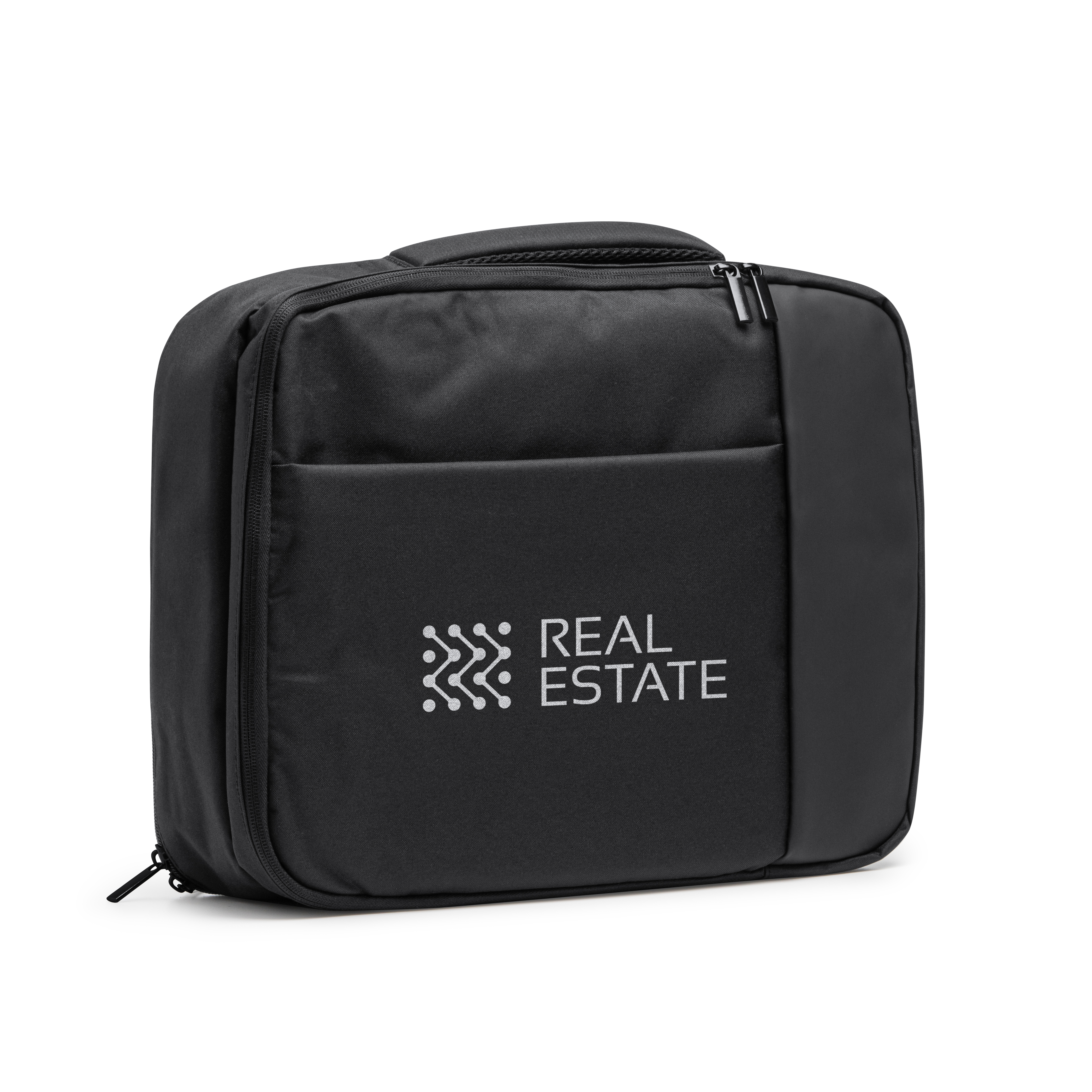 Zaino da viaggio Executive in poliestere 300D. Due tasche principali imbottite con scomparti interni e tasche ideali per computer portatili o tablet. Schienale e spallacci imbottiti. Tasca a scomparsa e cinturino per trolley. Dimensioni: cm 32x41x14